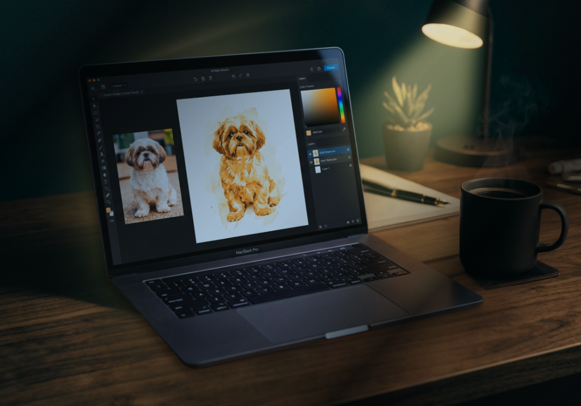 At Paw Print Station, we use state-of-the-art AI as our medium to capture what a lens alone cannot. Each tribute is digitally composed and hand-edited in our studio to ensure the 'soulful gaze' of your companion is perfectly preserved. By blending the precision of modern tech with the emotional depth of your unspoken bond, we create something more than a shirt—we create a wearable memory.