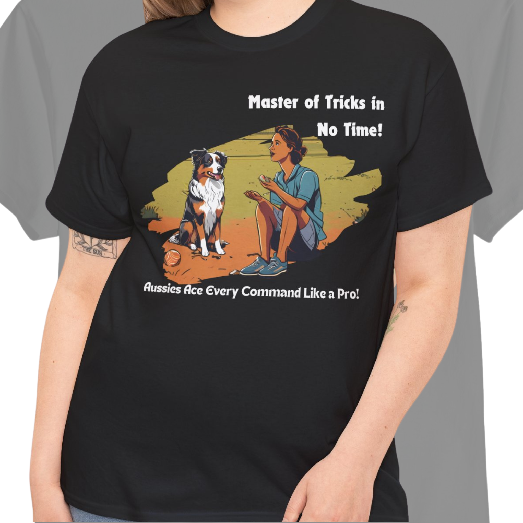 Women’s “Aussie Trickster: Master of Commands” T‑Shirt – Clever Pup Mom Gift