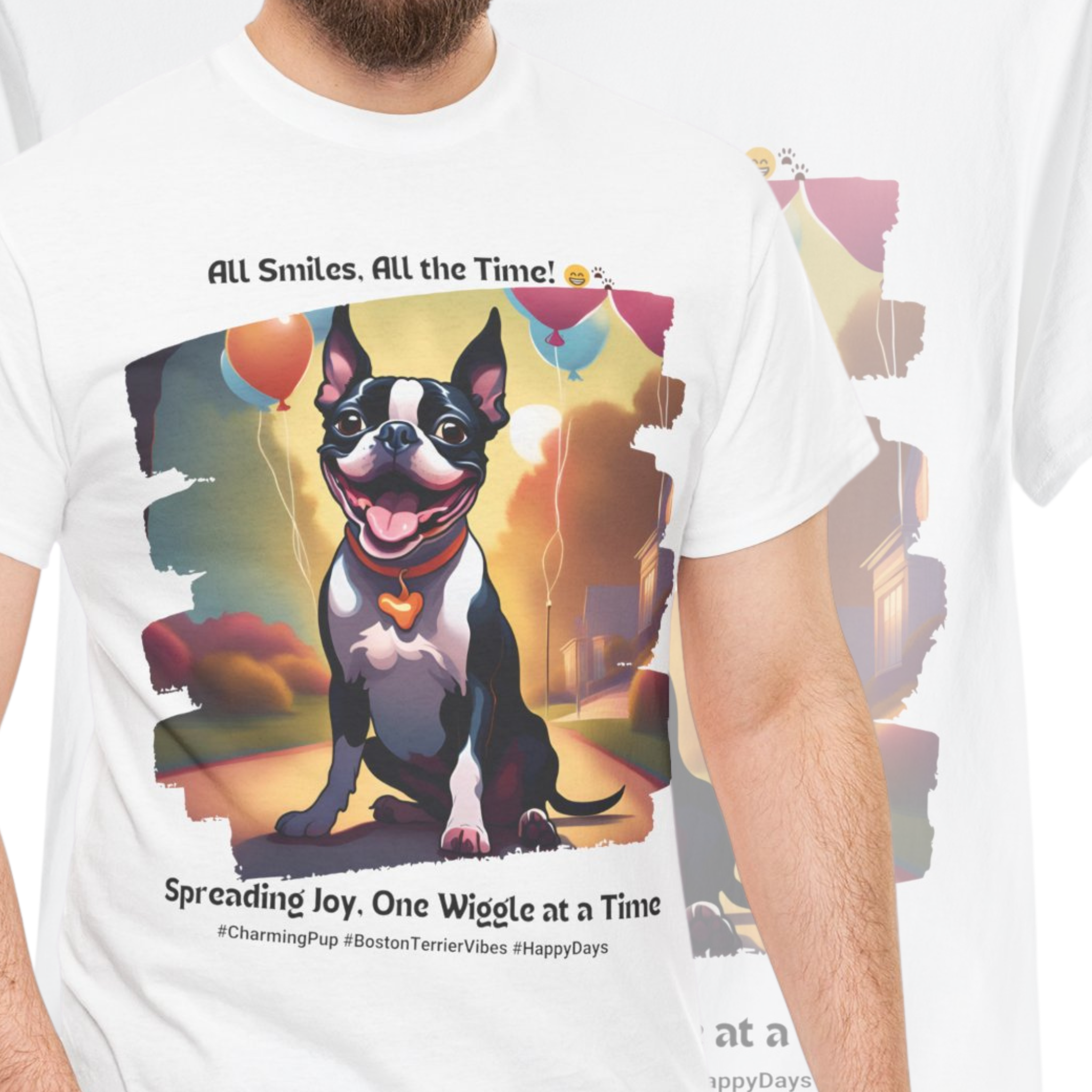 Unisex “Happy Days” Boston Terrier T‑Shirt – Bright Mood Pup Tee