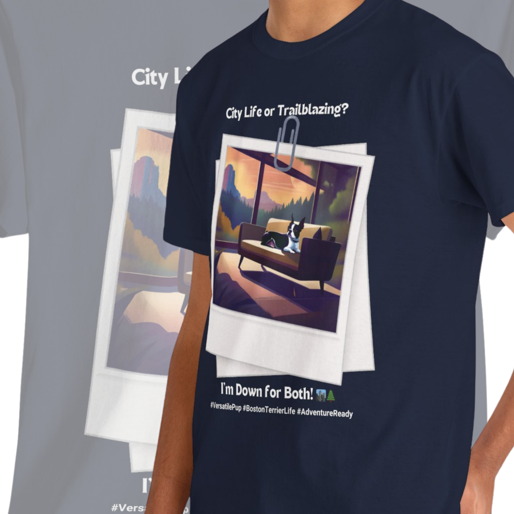 Unisex “Adventure Awaits” Boston Terrier T‑Shirt – Explorer Pup Gift