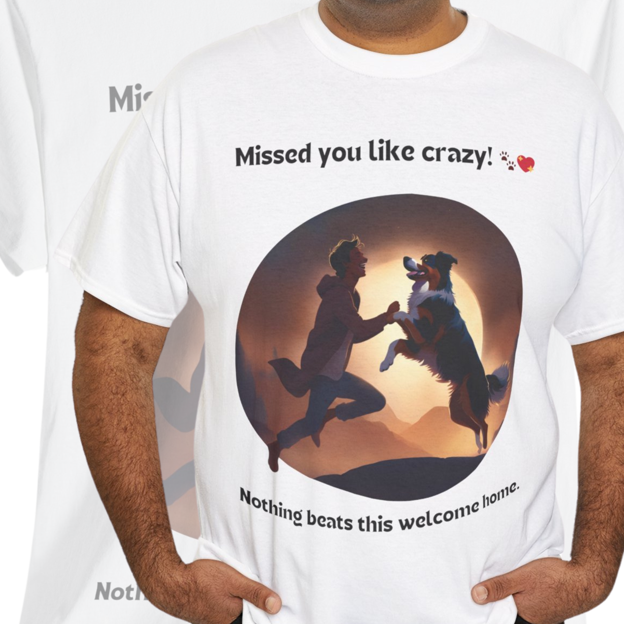 Men’s “Missed You Like Crazy” Australian Shepherd T‑Shirt – Reunion Pup Dad Gift