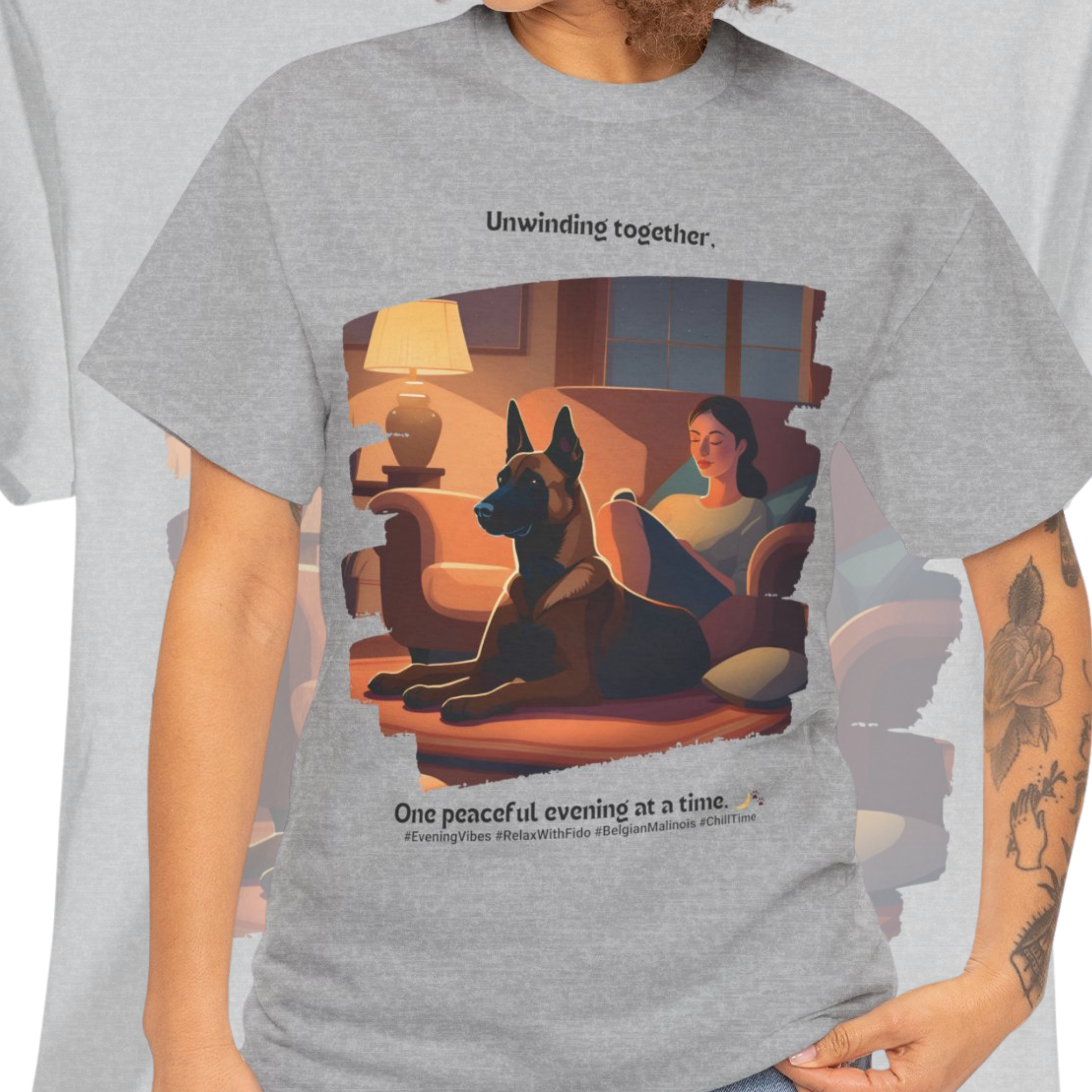 Women’s “Unwinding Together” Belgian Malinois T‑Shirt – Relaxation Gift, Bonding Tee