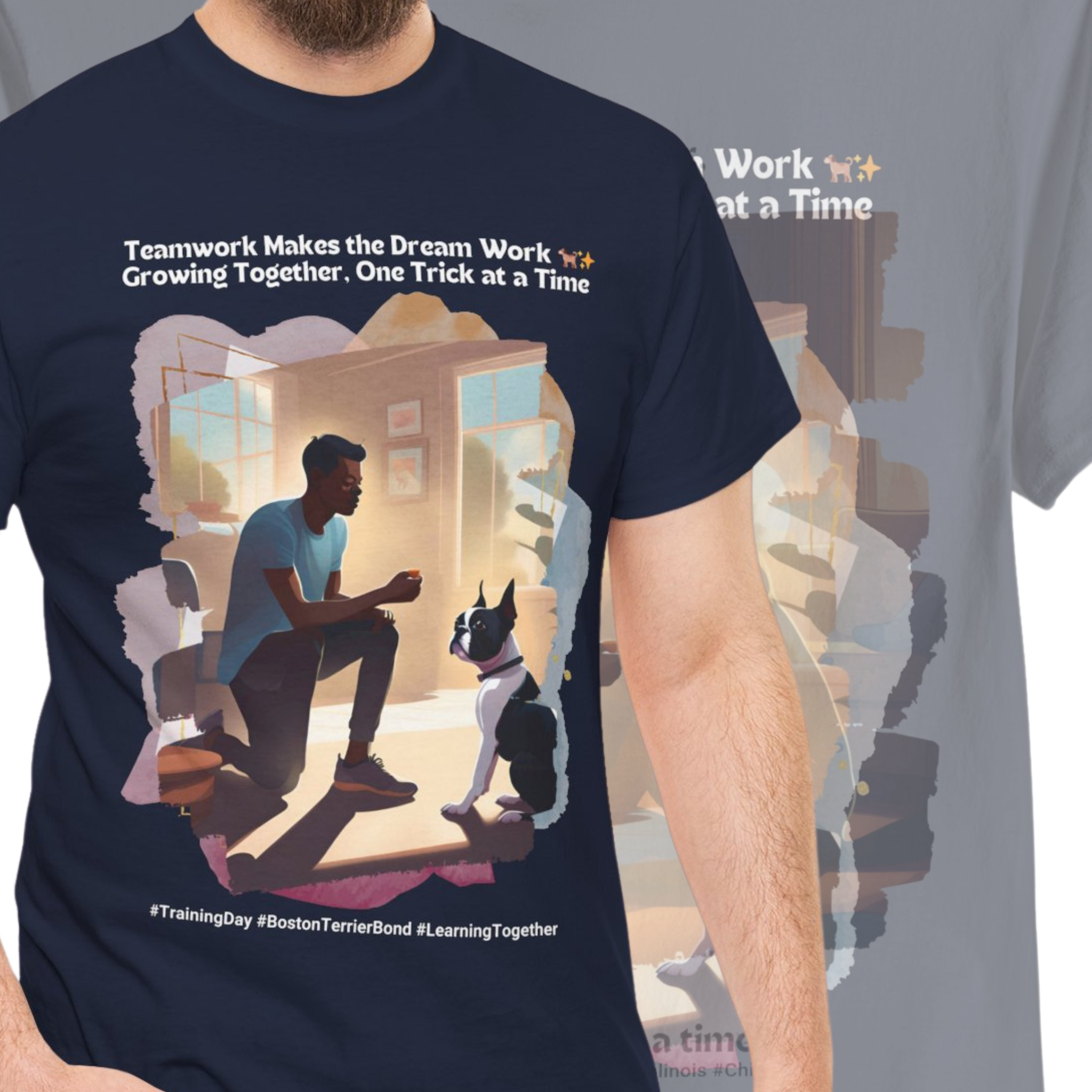 Men’s “Learning Together” Boston Terrier T‑Shirt – Training Pup Dad Gift