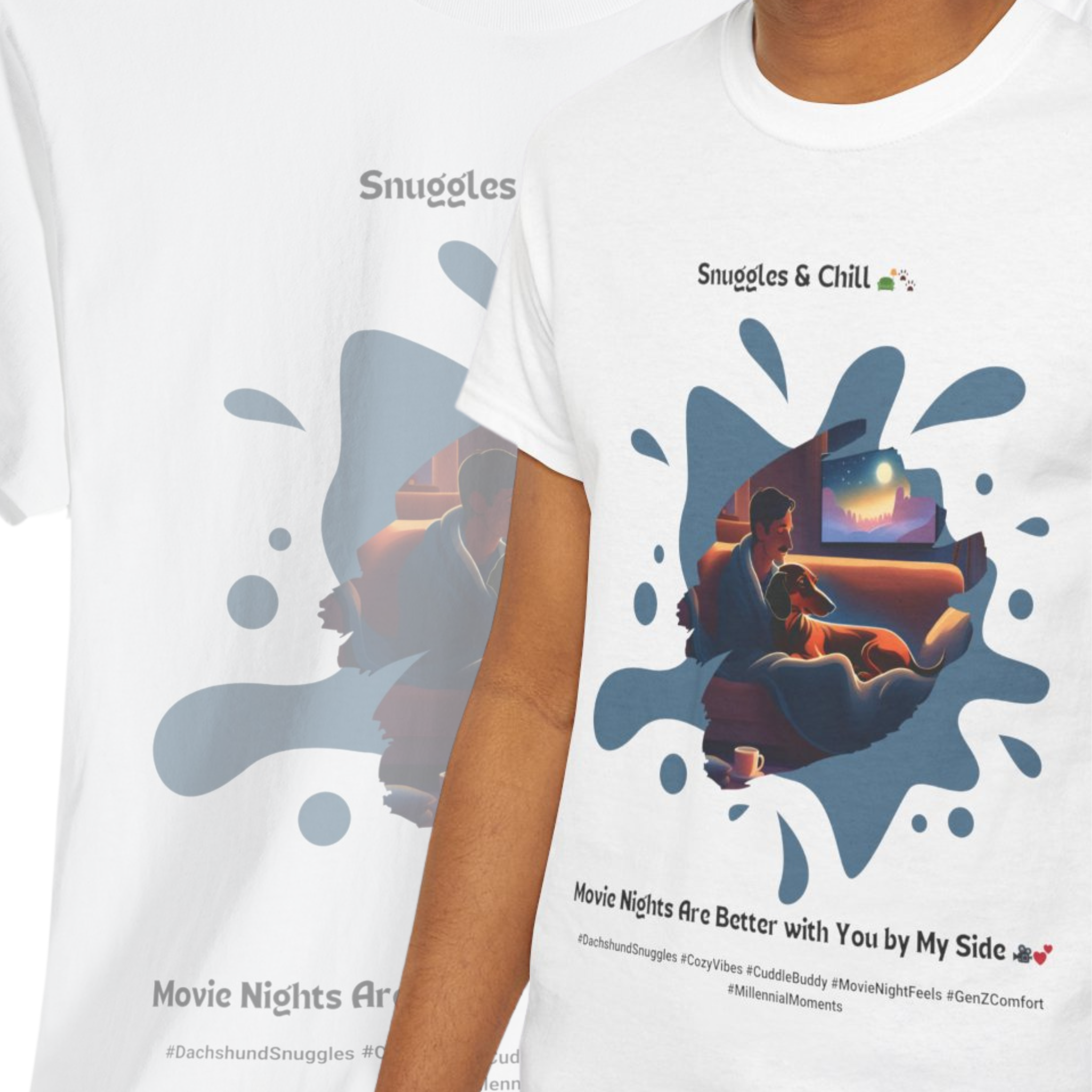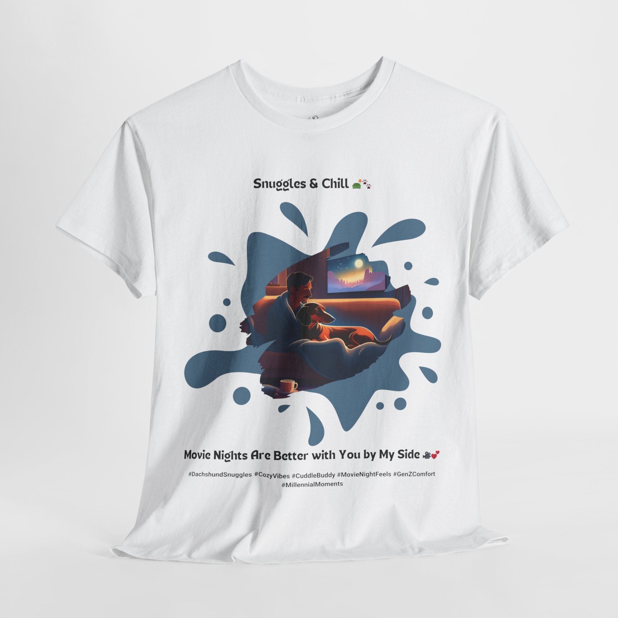 Men’s “Snuggles & Chill” Dachshund T-Shirt – Movie Night Pup, Dog Dad Gift