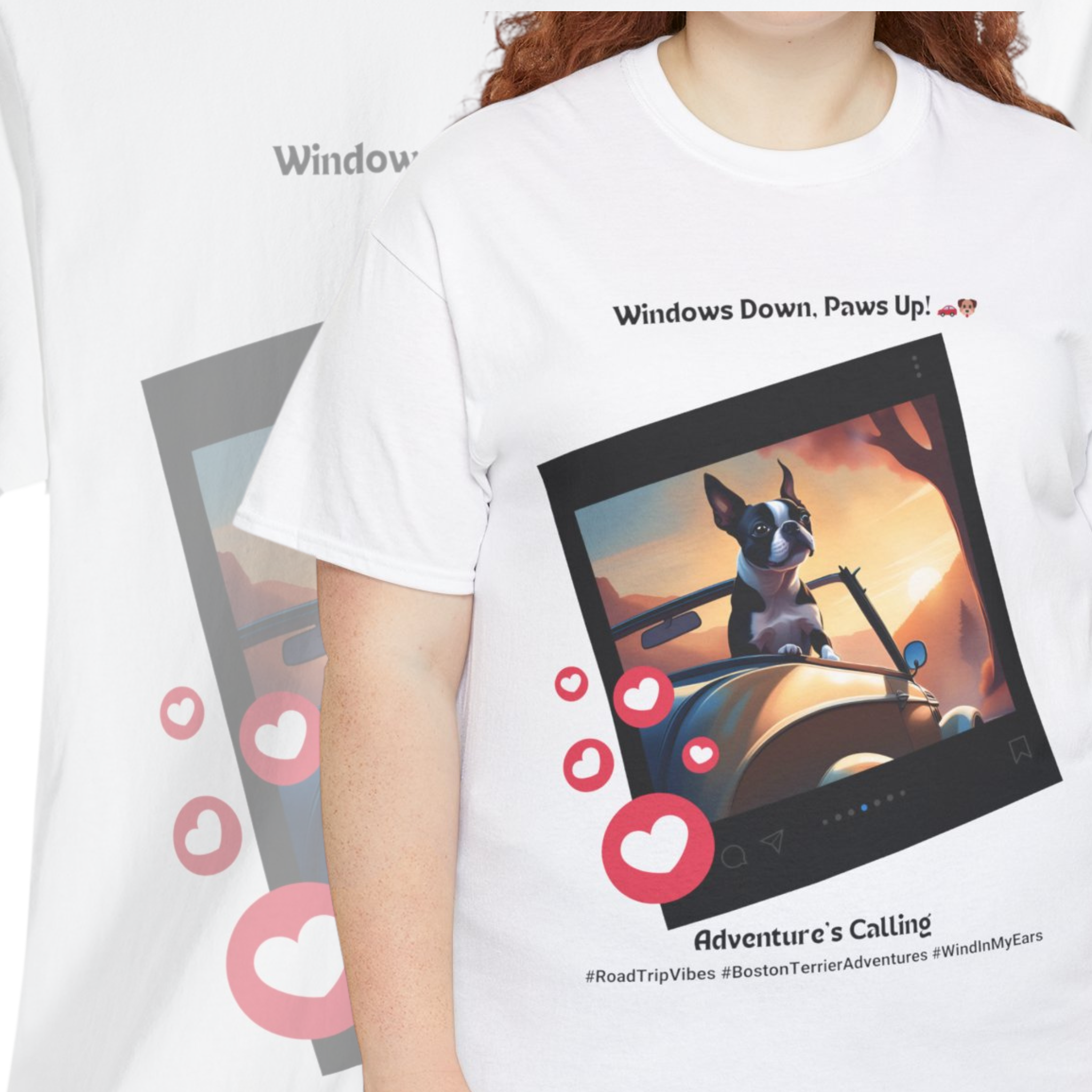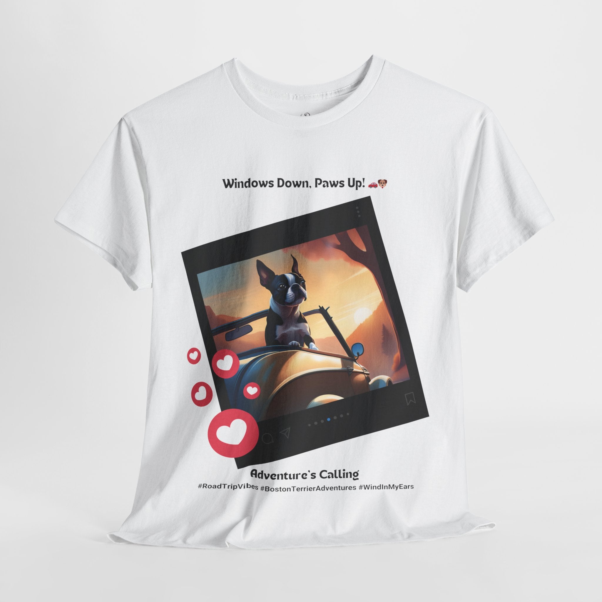 Unisex “Adventure’s Calling” Boston Terrier Road Trip T‑Shirt – Road-Trip Pup Gift