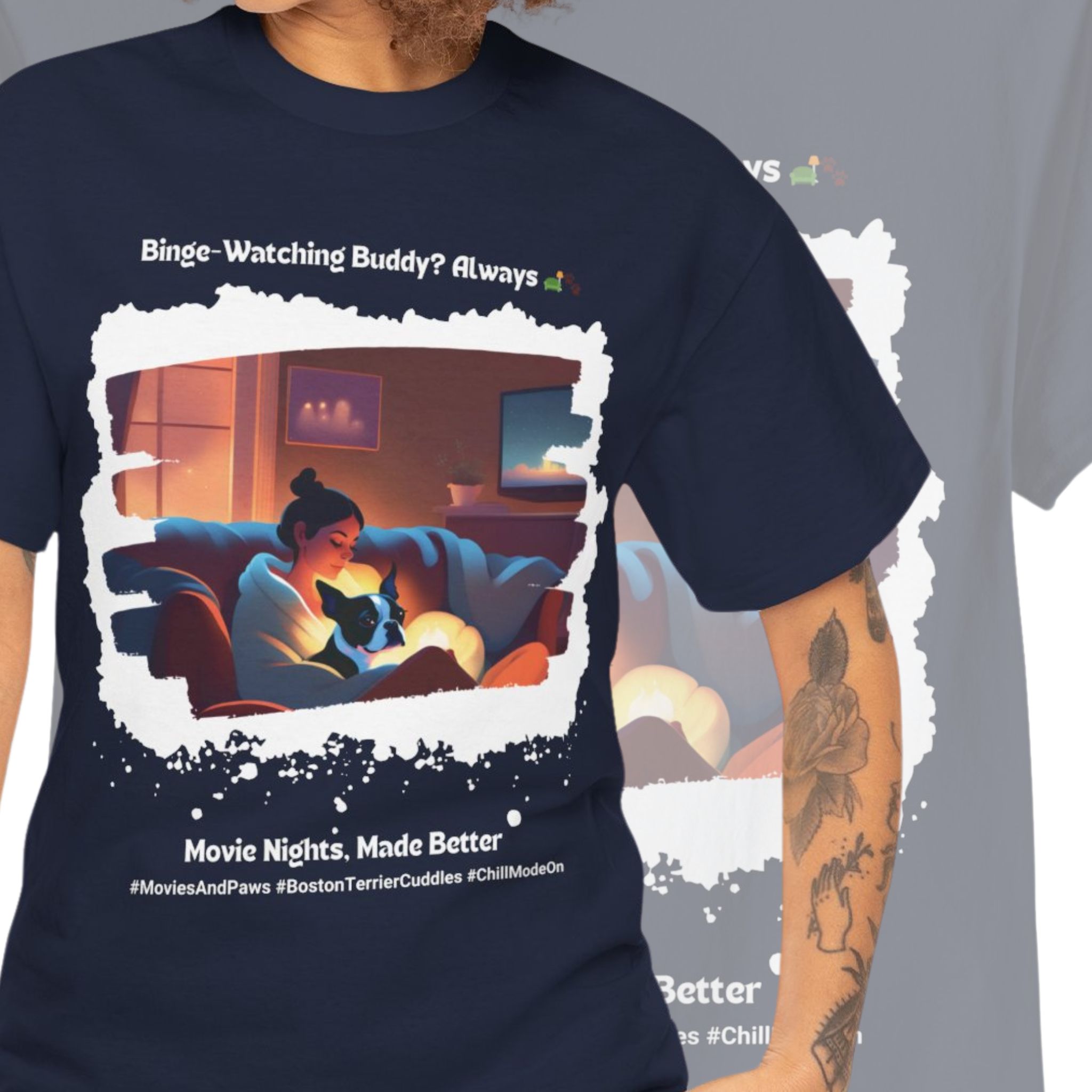 Men’s “Movie Nights, Made Better” Boston Terrier T‑Shirt – Cozy Pup Dad Gift