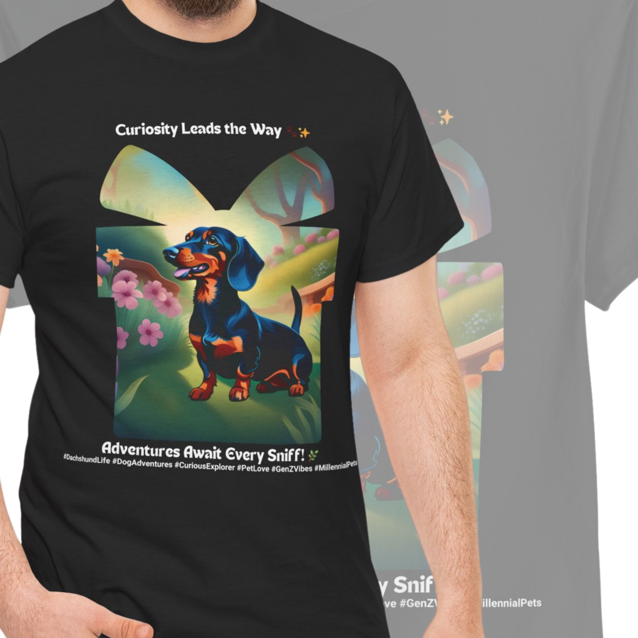 Unisex “Your Curious Companion” Dachshund T‑Shirt – Explorer Pup Gift