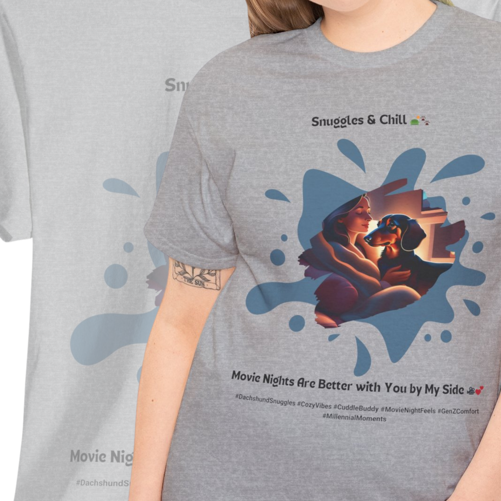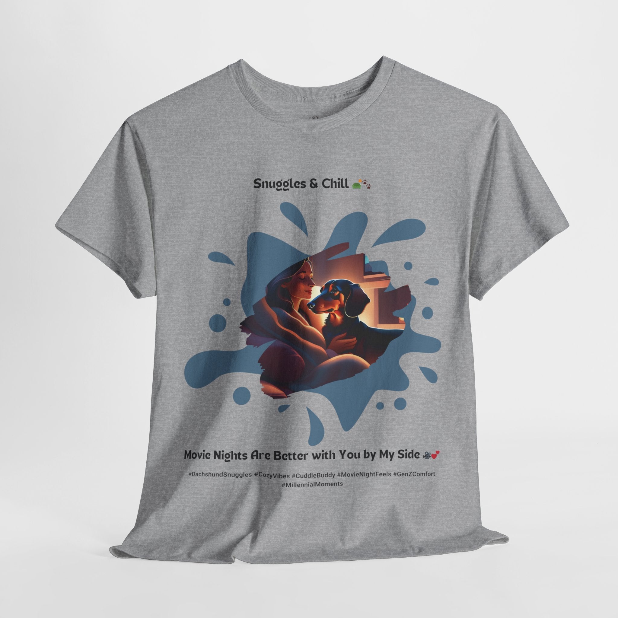 Women’s “Snuggles & Chill” Dachshund T-Shirt – Movie Night Pup, Dog Mom Gift