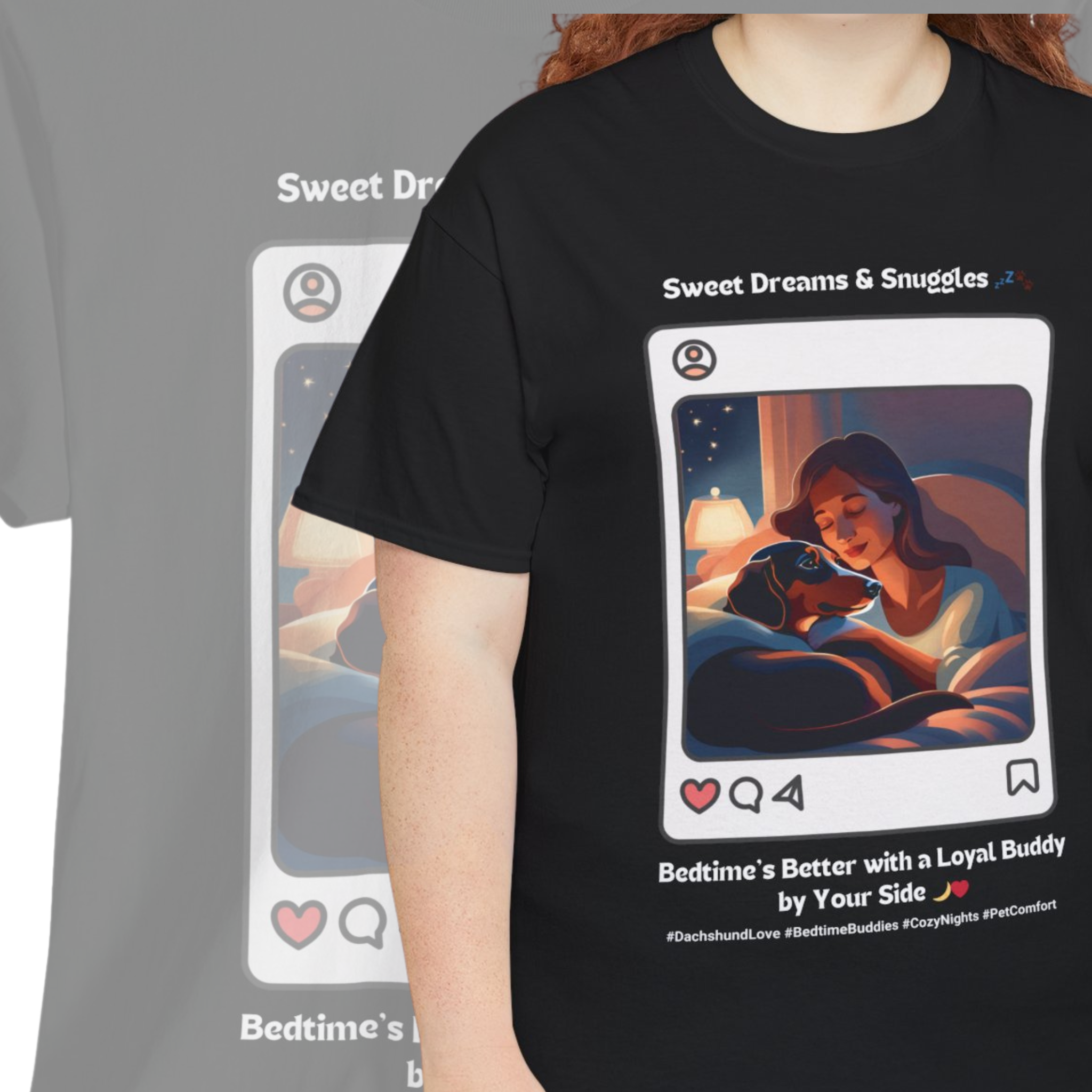 Women’s “Sweet Dreams & Snuggles” Dachshund T‑Shirt – Cozy Love Mom Gift