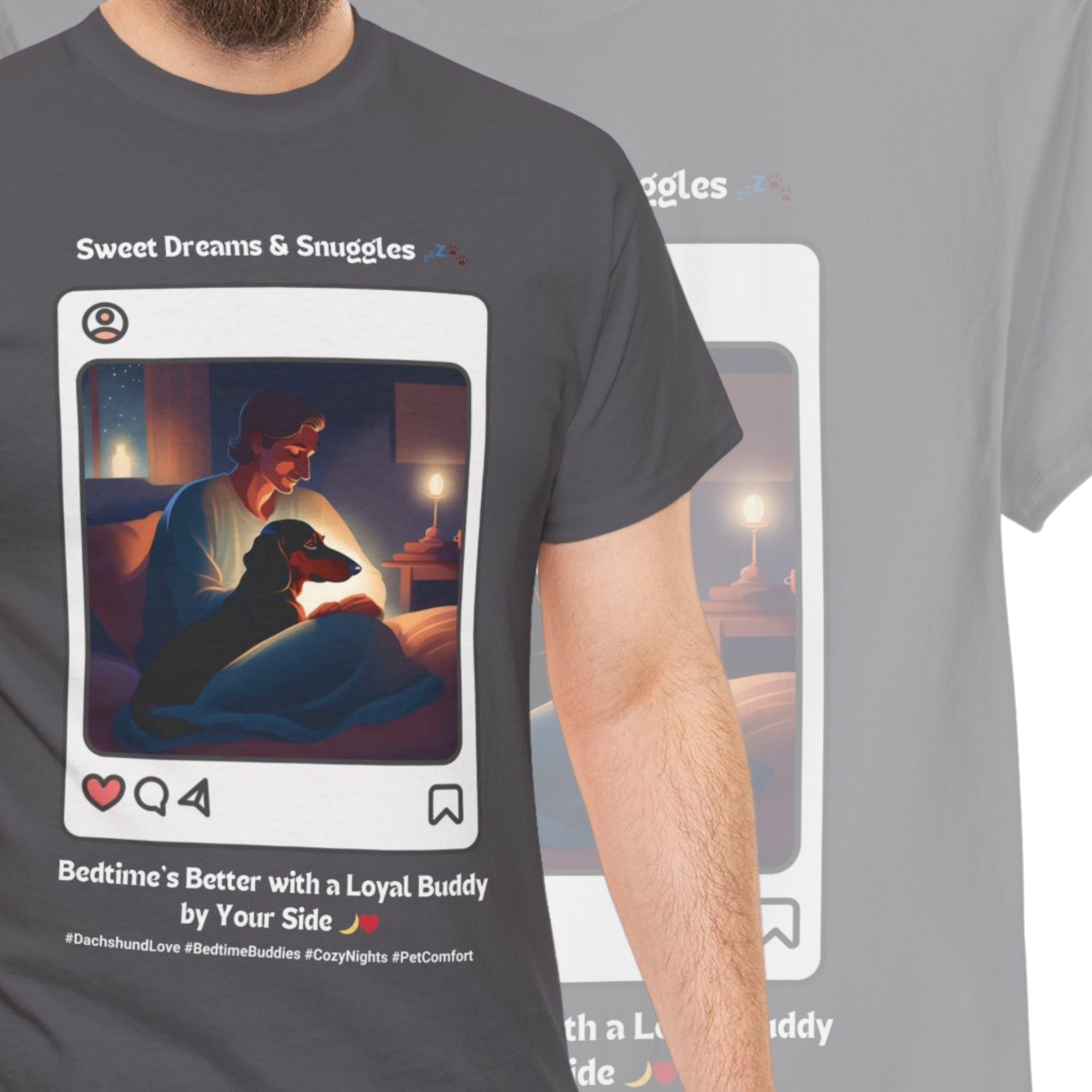 Men’s “Sweet Dreams & Snuggles” Dachshund T‑Shirt – Cozy Love Dad Gift