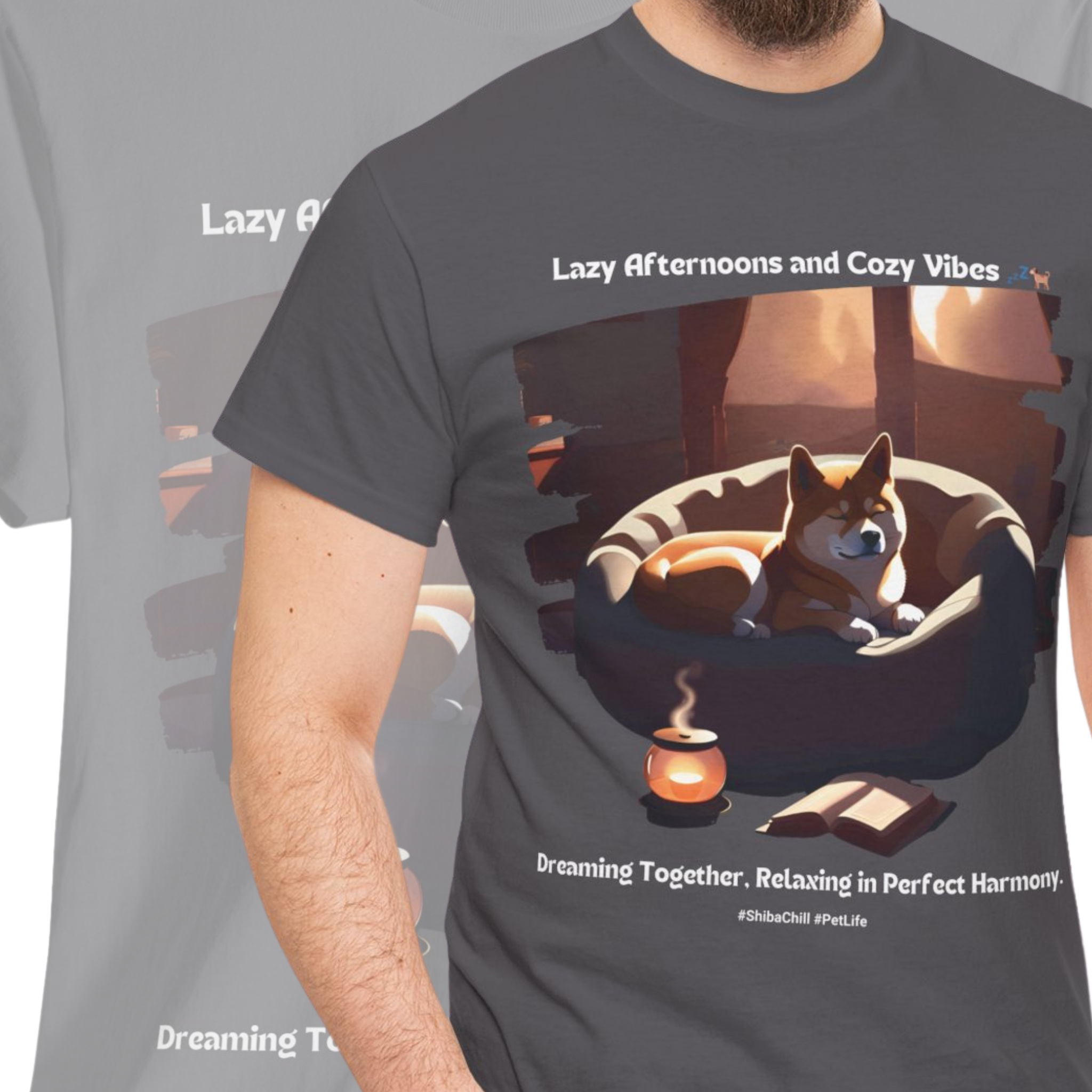 Unisex “Lazy Afternoons & Cozy Vibes” Shiba Inu T‑Shirt – Laid‑Back Pup Gift