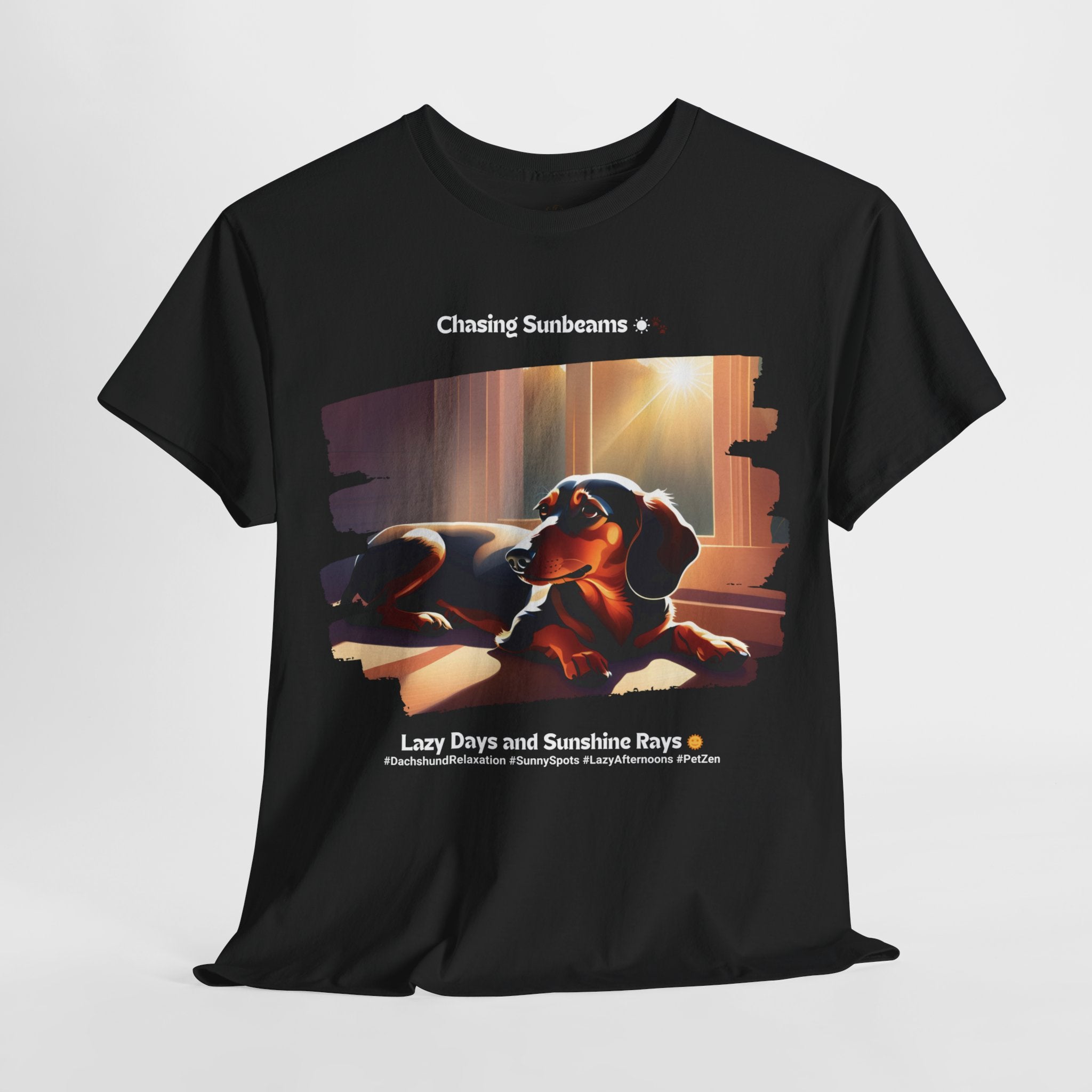 Unisex “Chasing Sunbeams” Dachshund T‑Shirt – Relaxed Pup Gift
