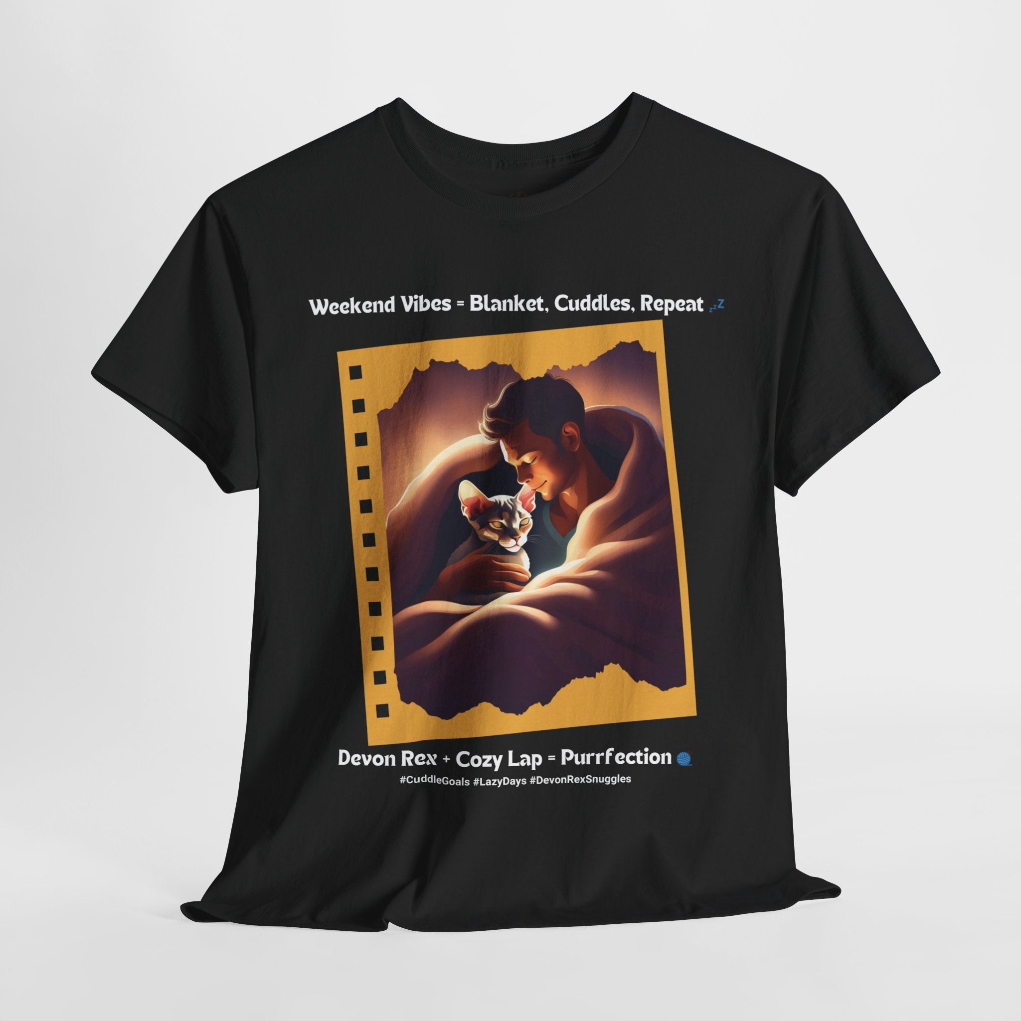 Men’s “Weekend Vibes” Devon Rex T‑Shirt – Cozy Cat Dad Gift