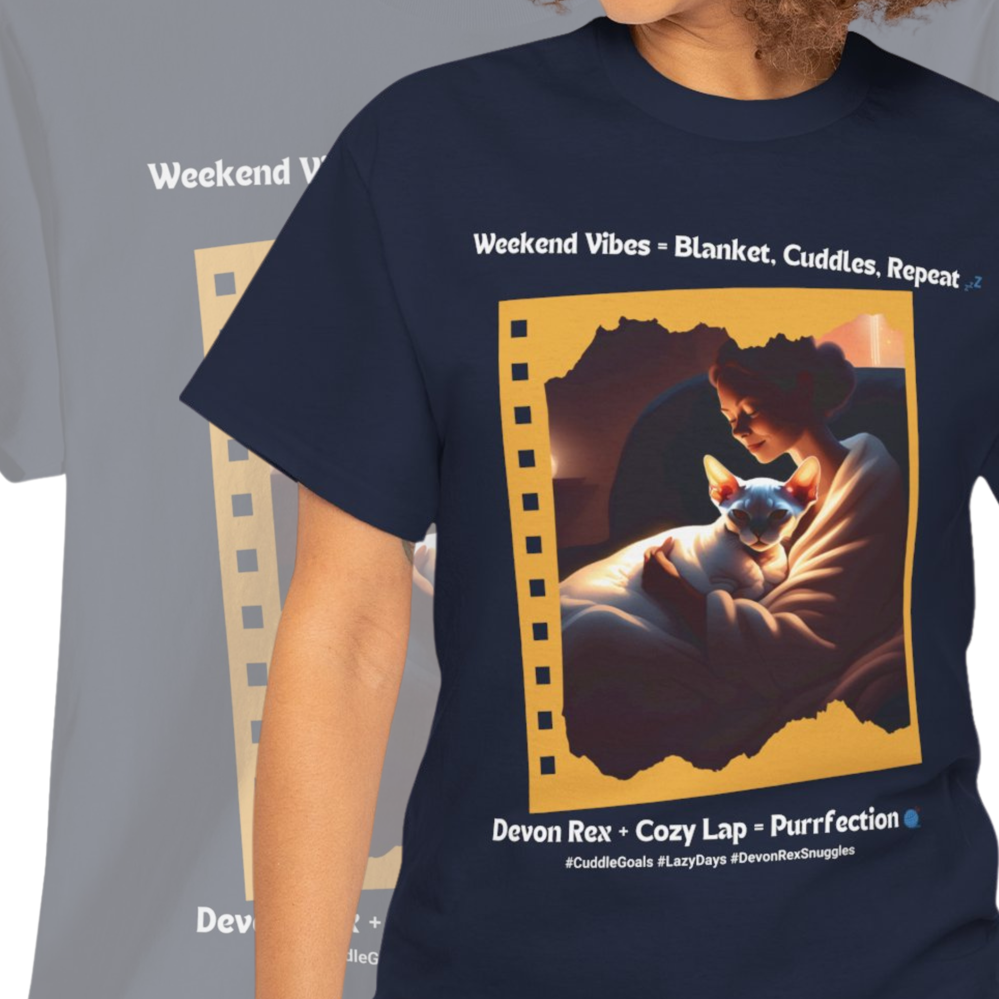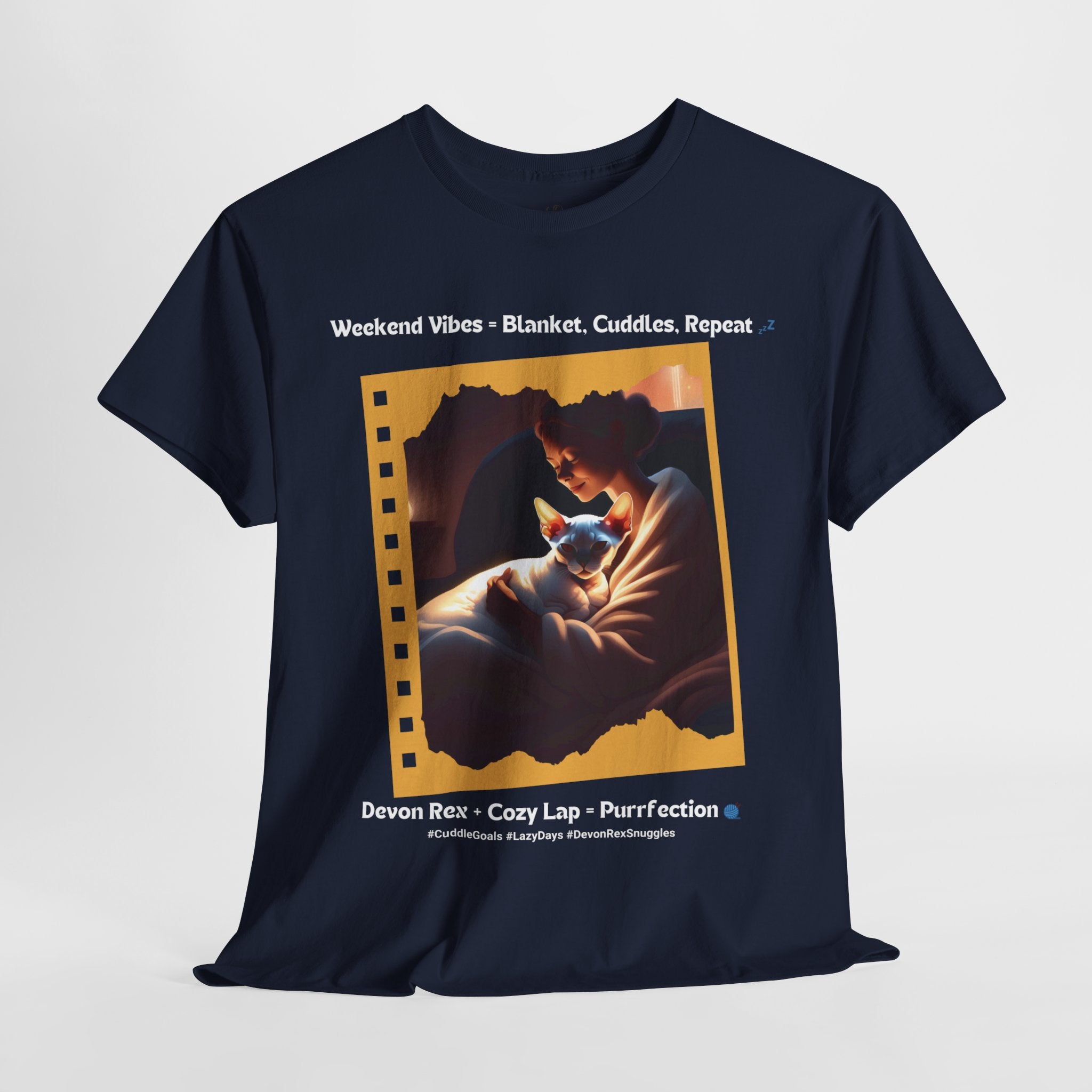 Women’s “Weekend Vibes” Devon Rex T‑Shirt – Cozy Cat Mom Gift