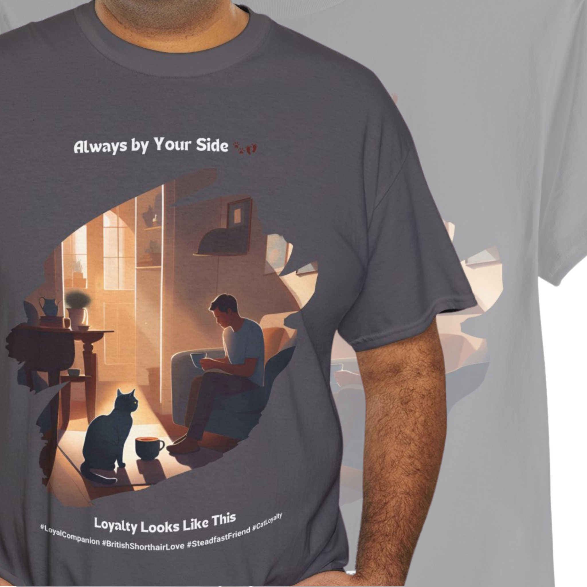 Men’s “Ever-Present Purr” British Shorthair T-Shirt – Loyal Kitty, Cat Dad Gift
