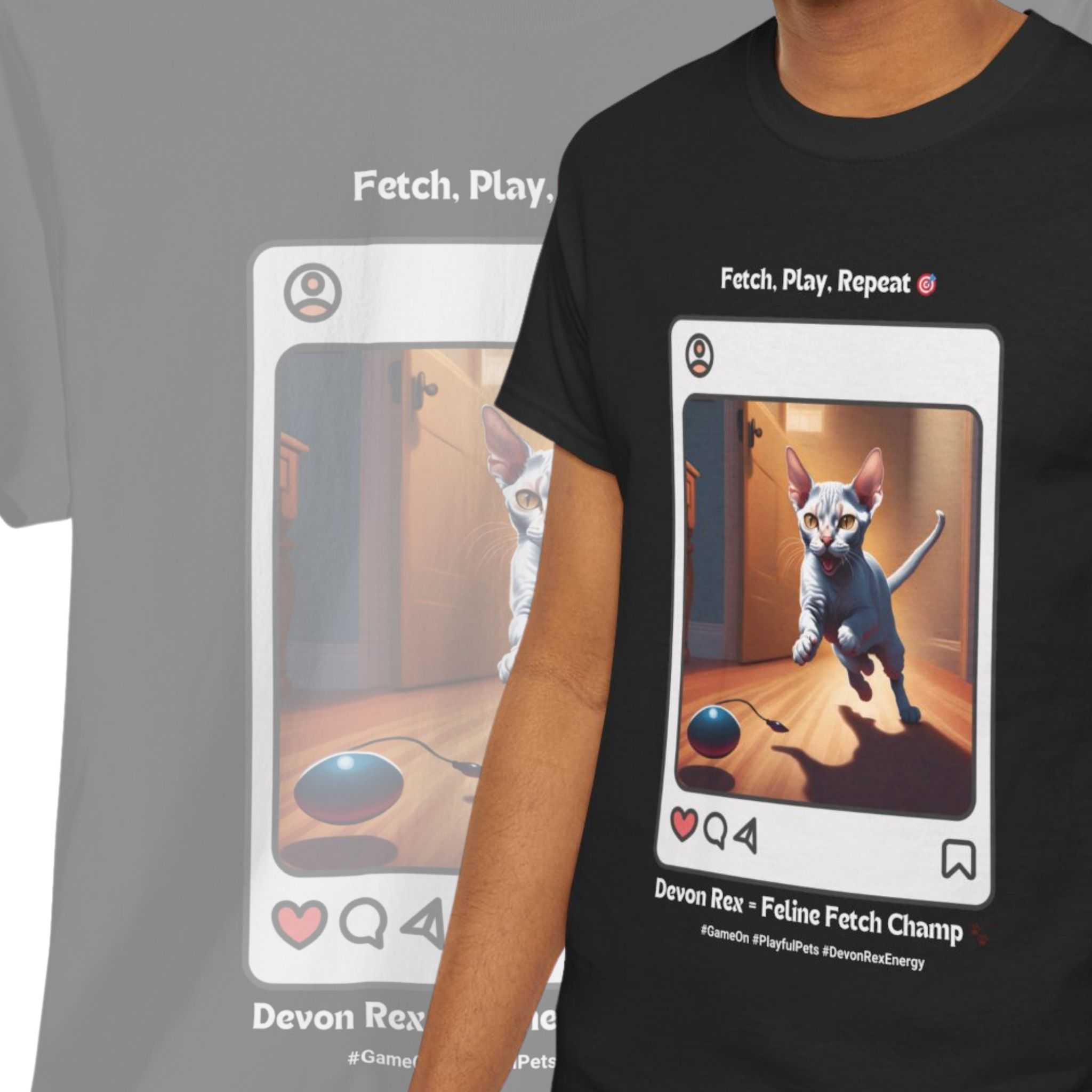 Unisex “Feline Fetch Champ” Devon Rex T‑Shirt – Playful Cat Gift
