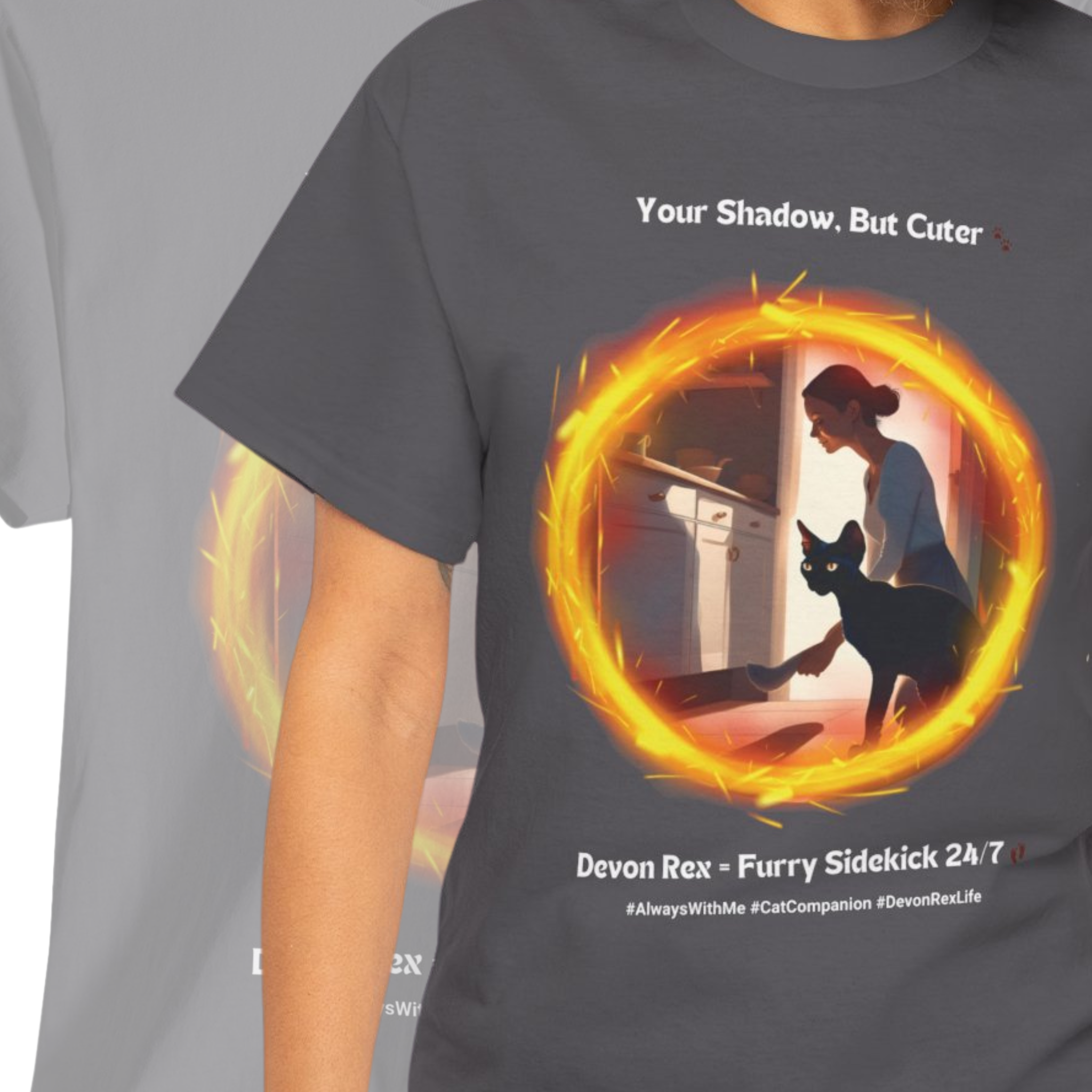 Men’s “Your Shadow, But Cuter” Devon Rex T‑Shirt – Loyal Cat Dad Gift