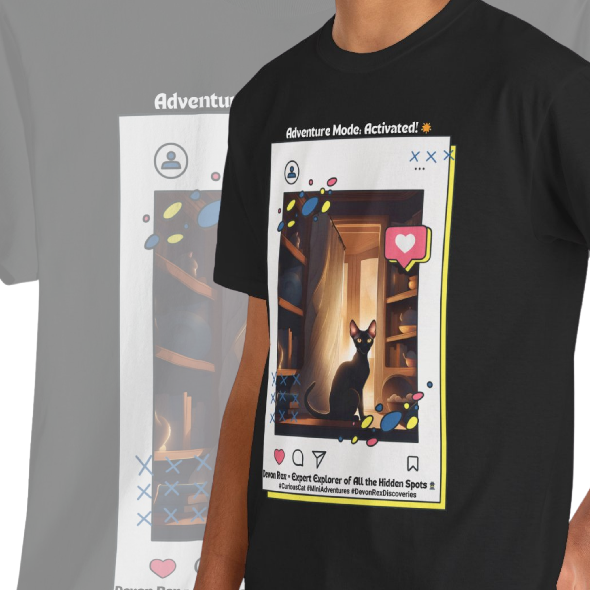 Unisex “Adventure Mode: Activated!” Devon Rex T‑Shirt – Explorer Cat Gift