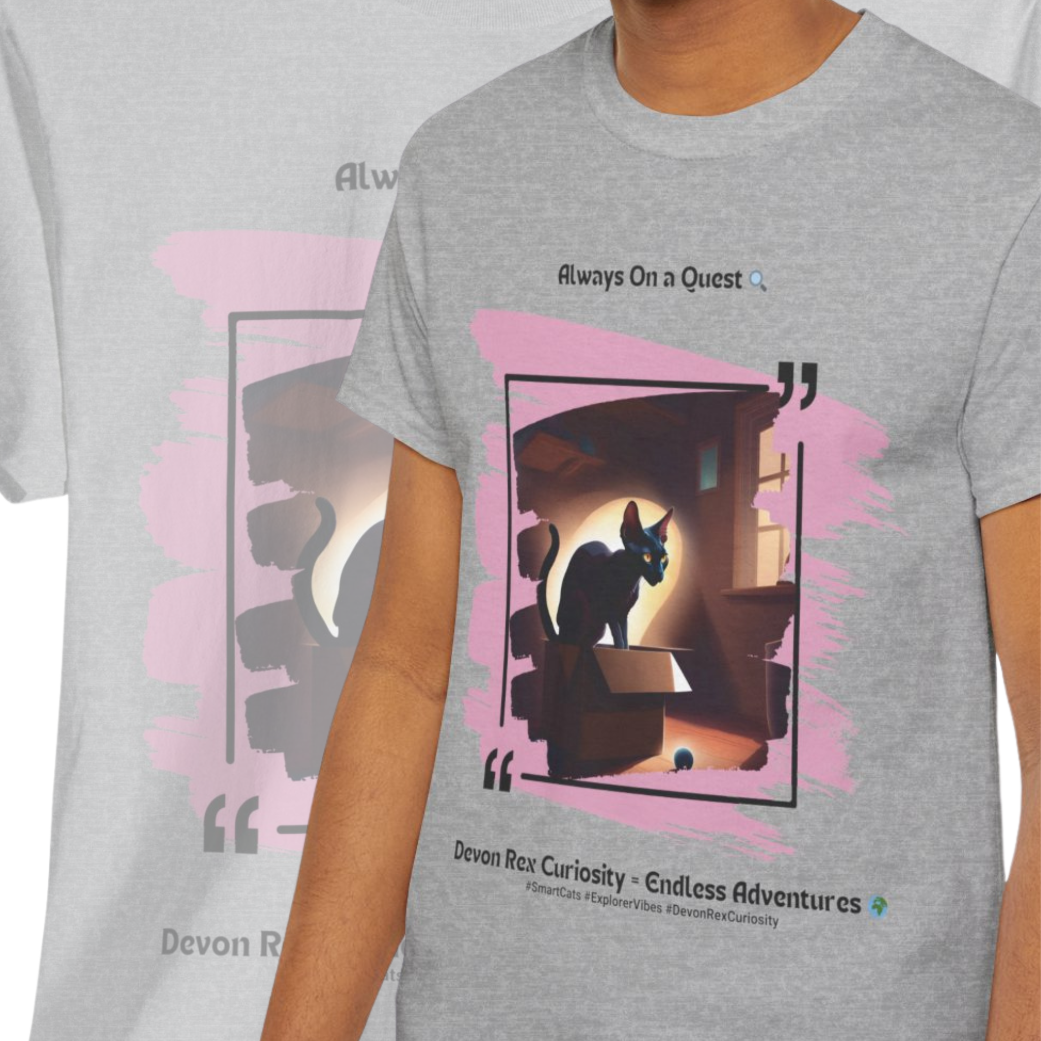 Unisex “Always On a Quest” Devon Rex T‑Shirt – Curious Kitty Gift