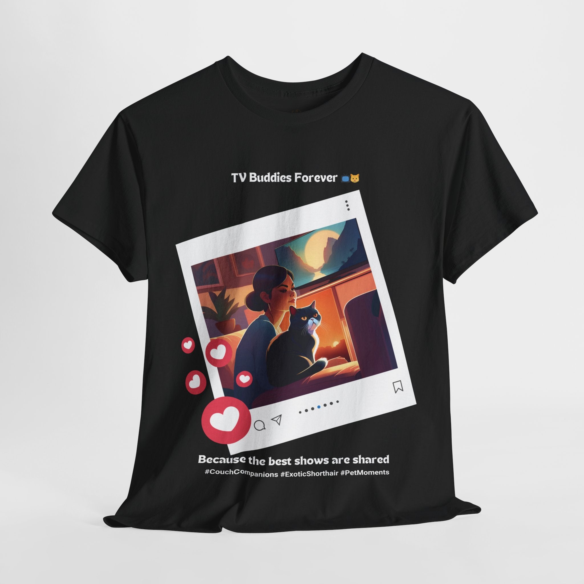 Women’s “TV Buddies Forever” Exotic Shorthair T‑Shirt – Cozy Night Cat Mom Gift