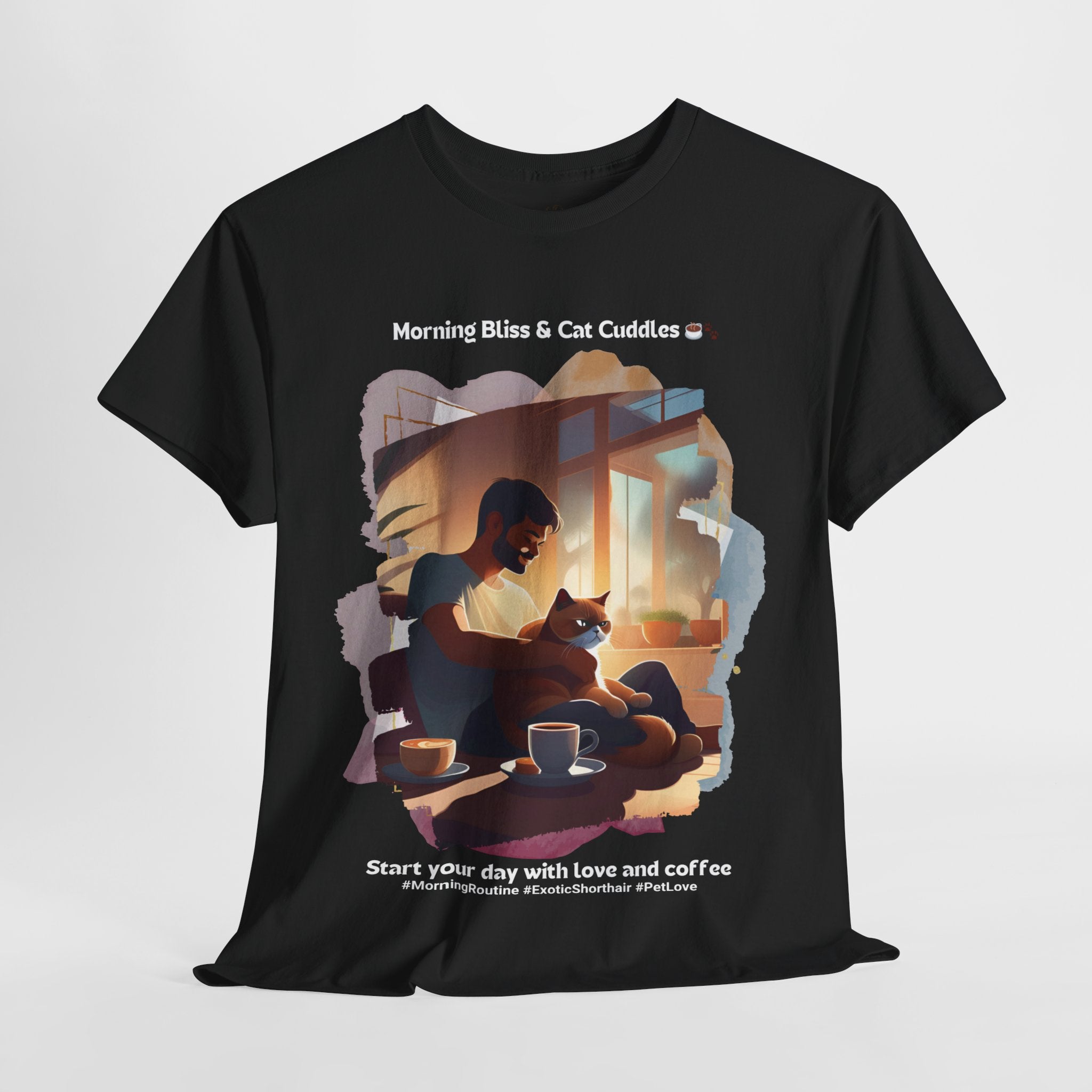 Men’s “Morning Bliss & Cat Cuddles” Exotic Shorthair T‑Shirt – Cuddle Cat Dad Gift