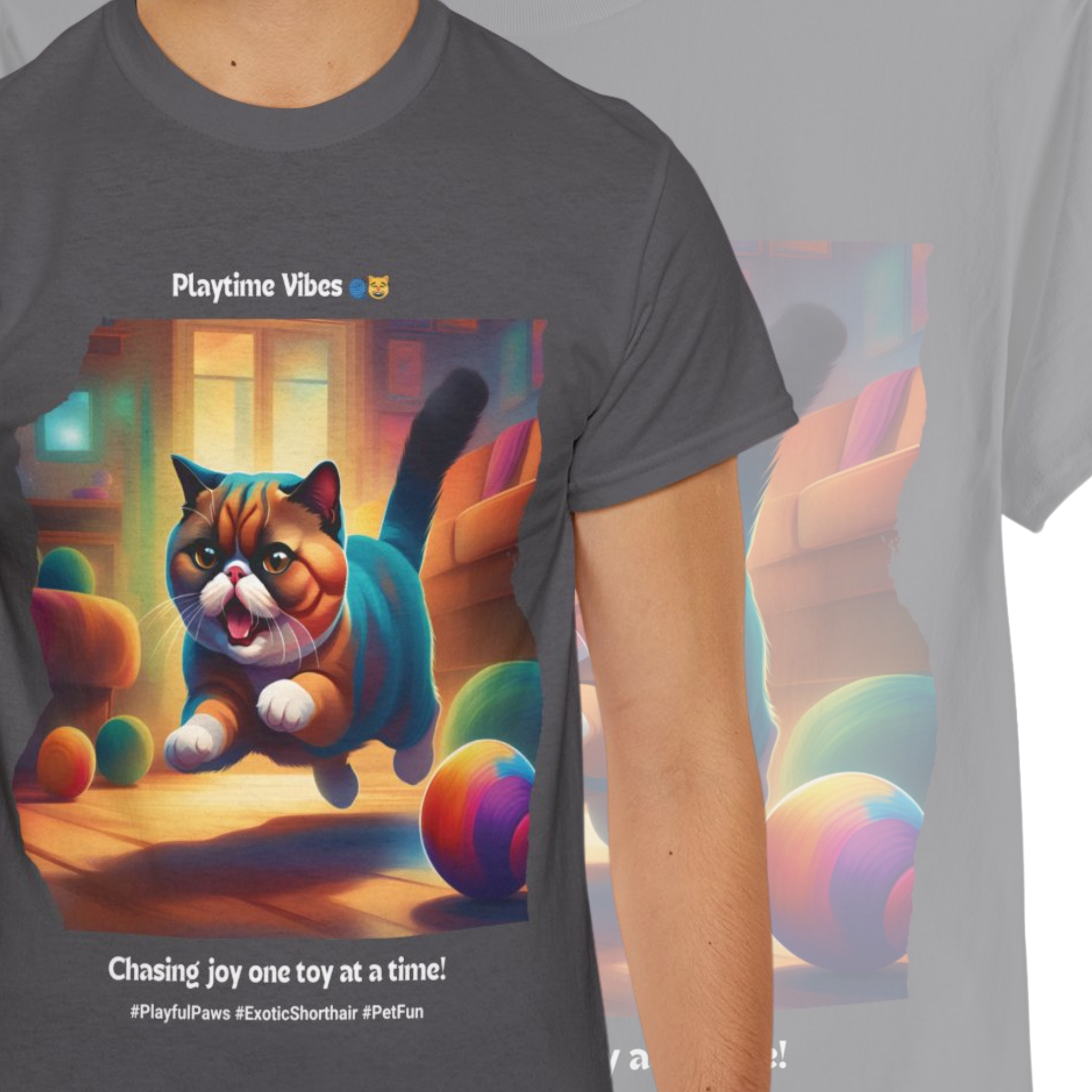 Unisex “Playtime Vibes” Exotic Shorthair T‑Shirt – Fun Cat Gift