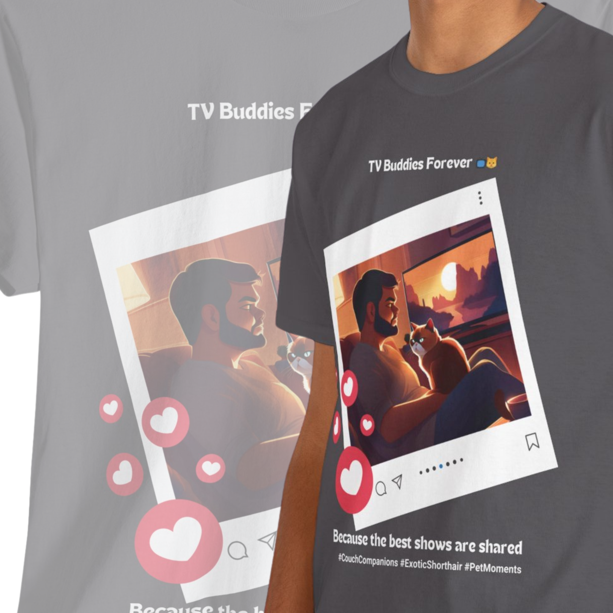 Men’s “TV Buddies Forever” Exotic Shorthair T‑Shirt – Cozy Night Cat Dad Gift