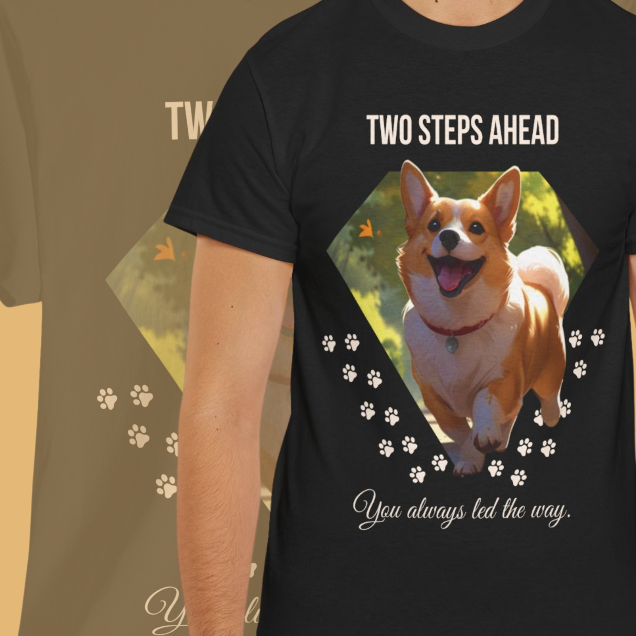 Unisex “Two Steps Ahead” Corgi T-Shirt – Nostalgic Dog Walk Lover Tee