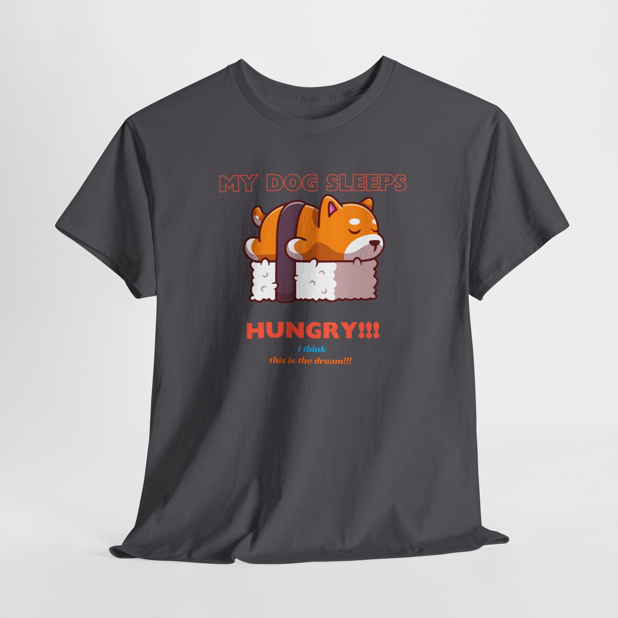 This hilarious t-shirt features a Shiba Inu pup dreaming of the ultimate sushi feast. The adorable design captures the dog's love for food and the hilarious image of a giant sushi roll as a pillow.