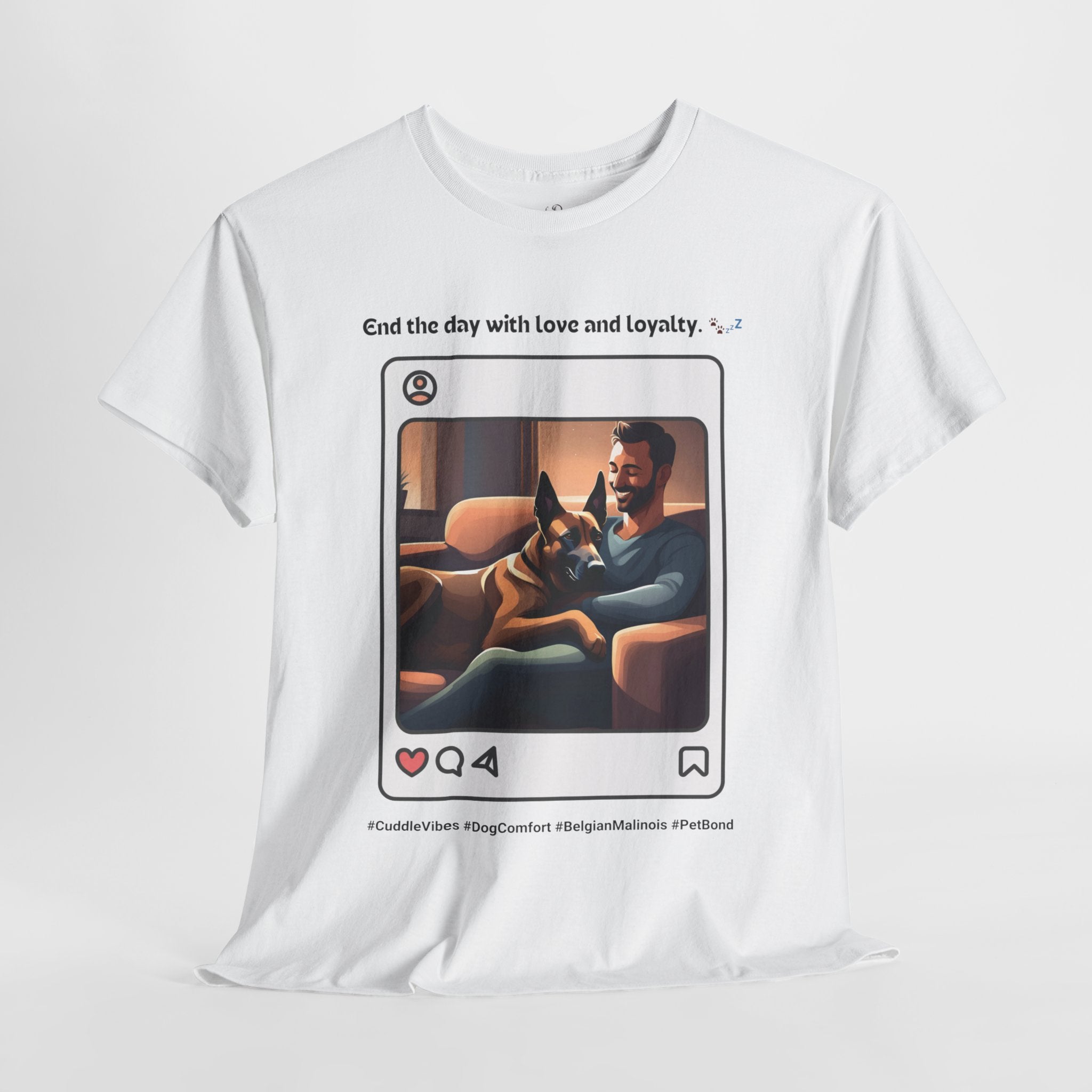 Are you a proud Belgian Malinois owner who cherishes the loving and comforting presence of your furry friend? This t-shirt is a must-have for any dog parent who appreciates the incredible bond they share with their canine companion. Our design features a Belgian Malinois snuggled up with their human, perfect for reminding you of those heartwarming moments you share with your loyal friend.