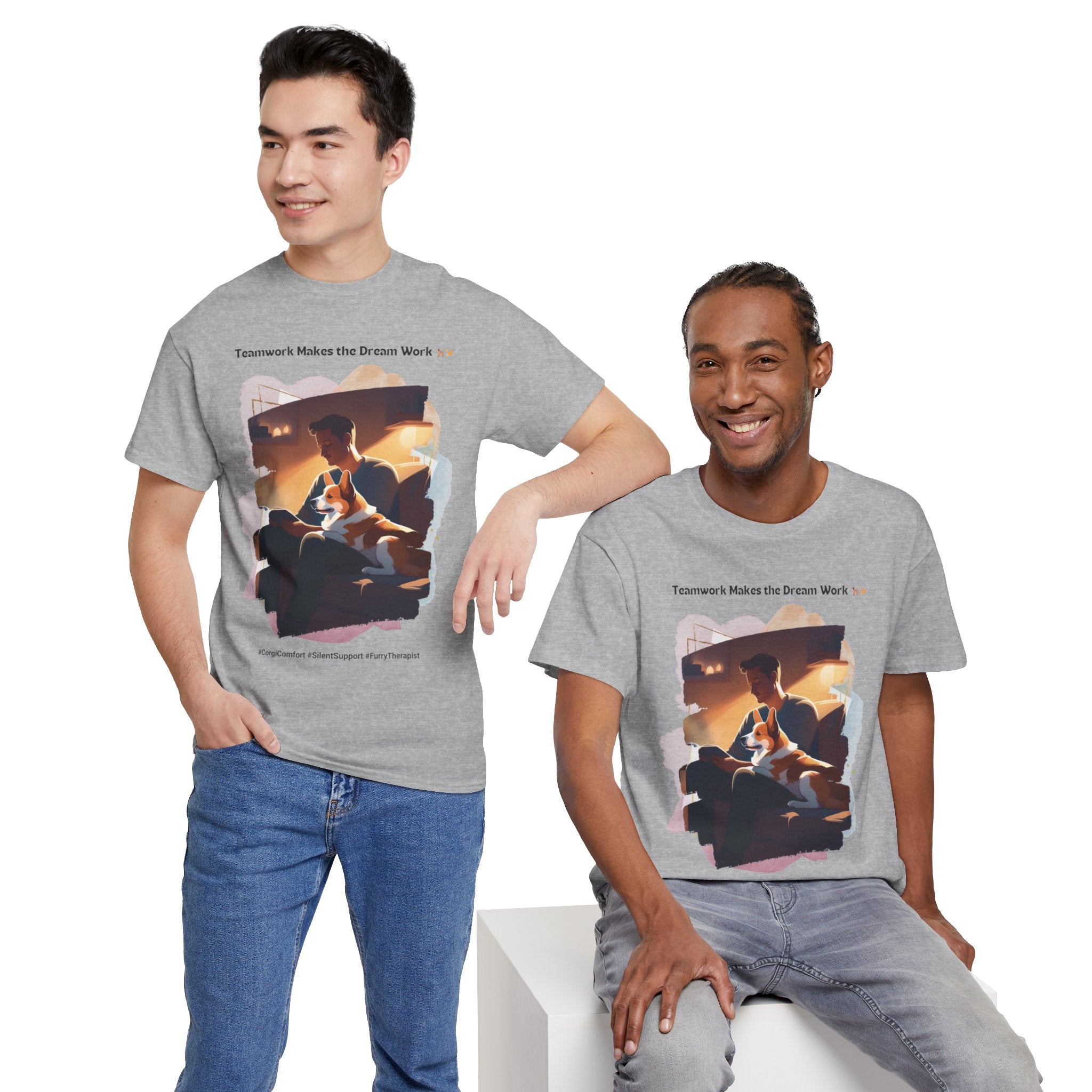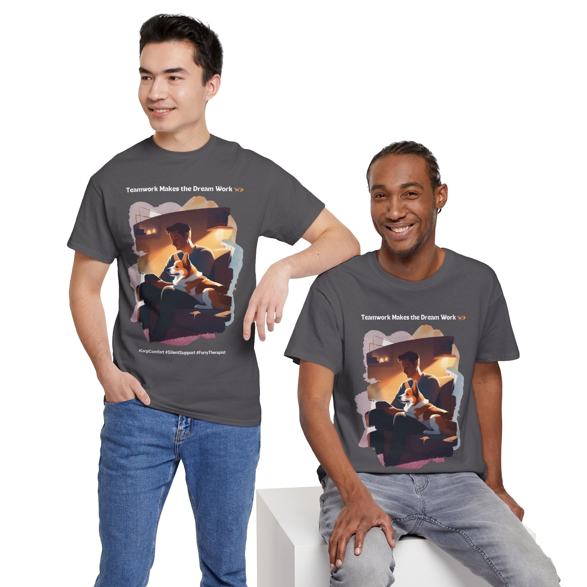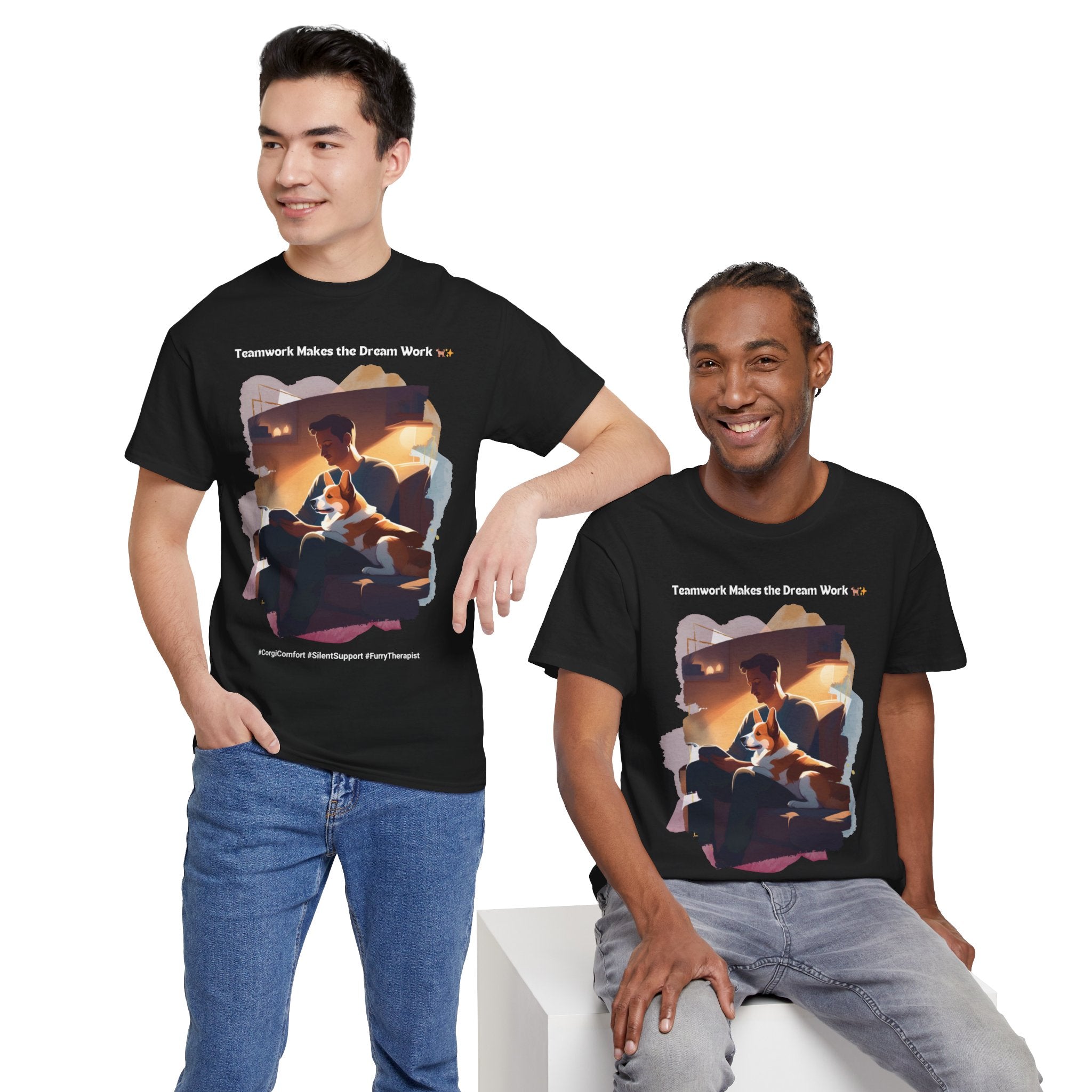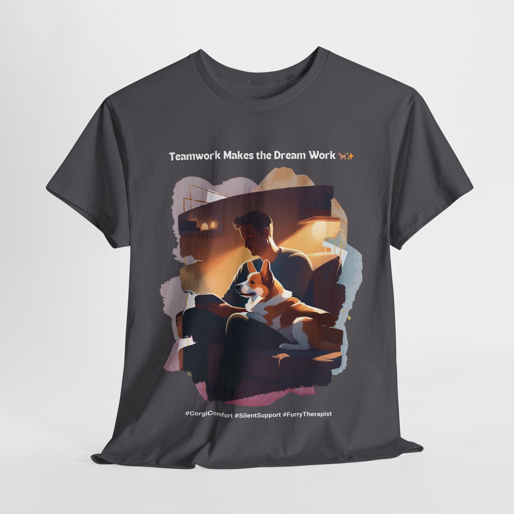 Men’s “In Every Storm, I’m Here for You” Corgi T-Shirt – Comfort Pup, Dog Dad Gift
