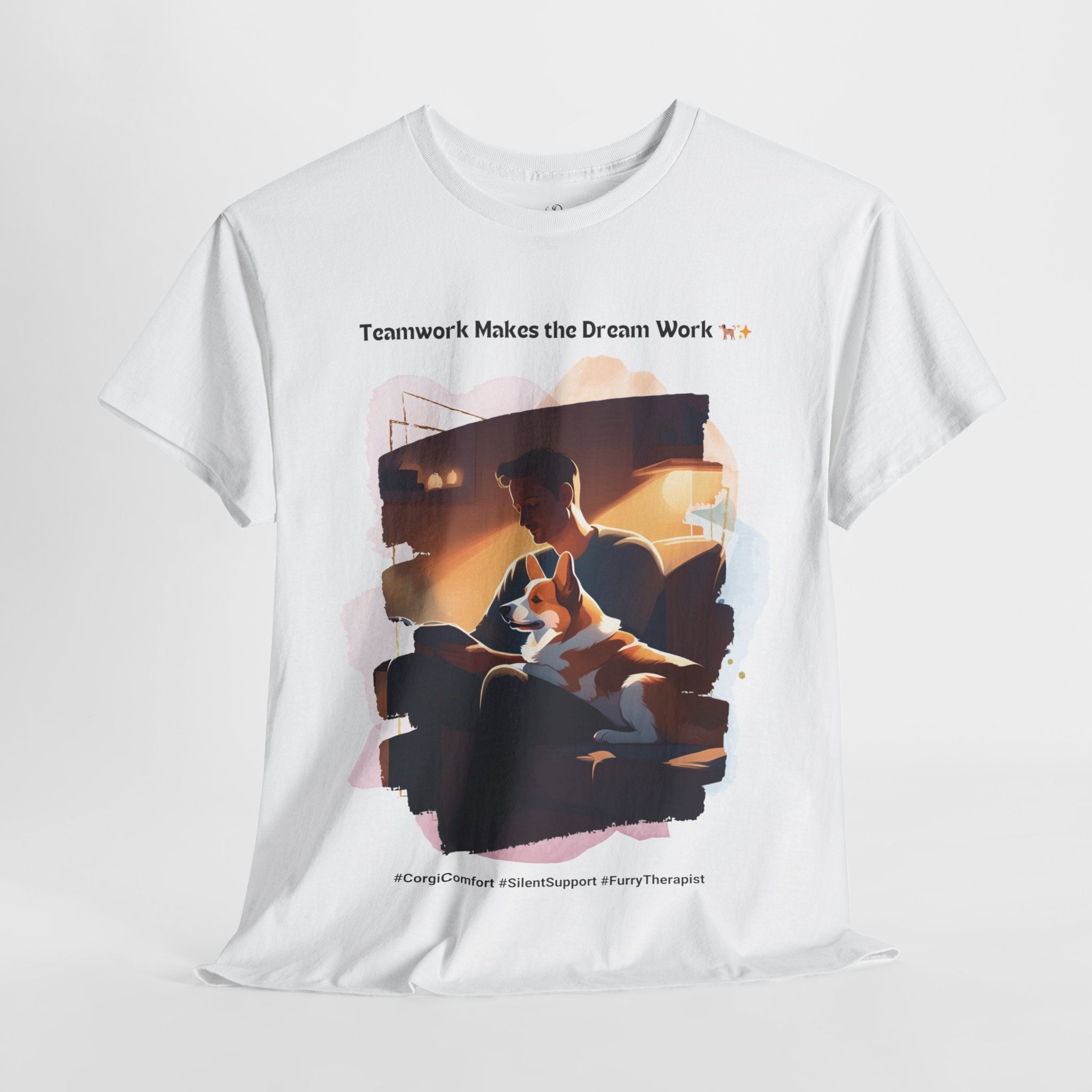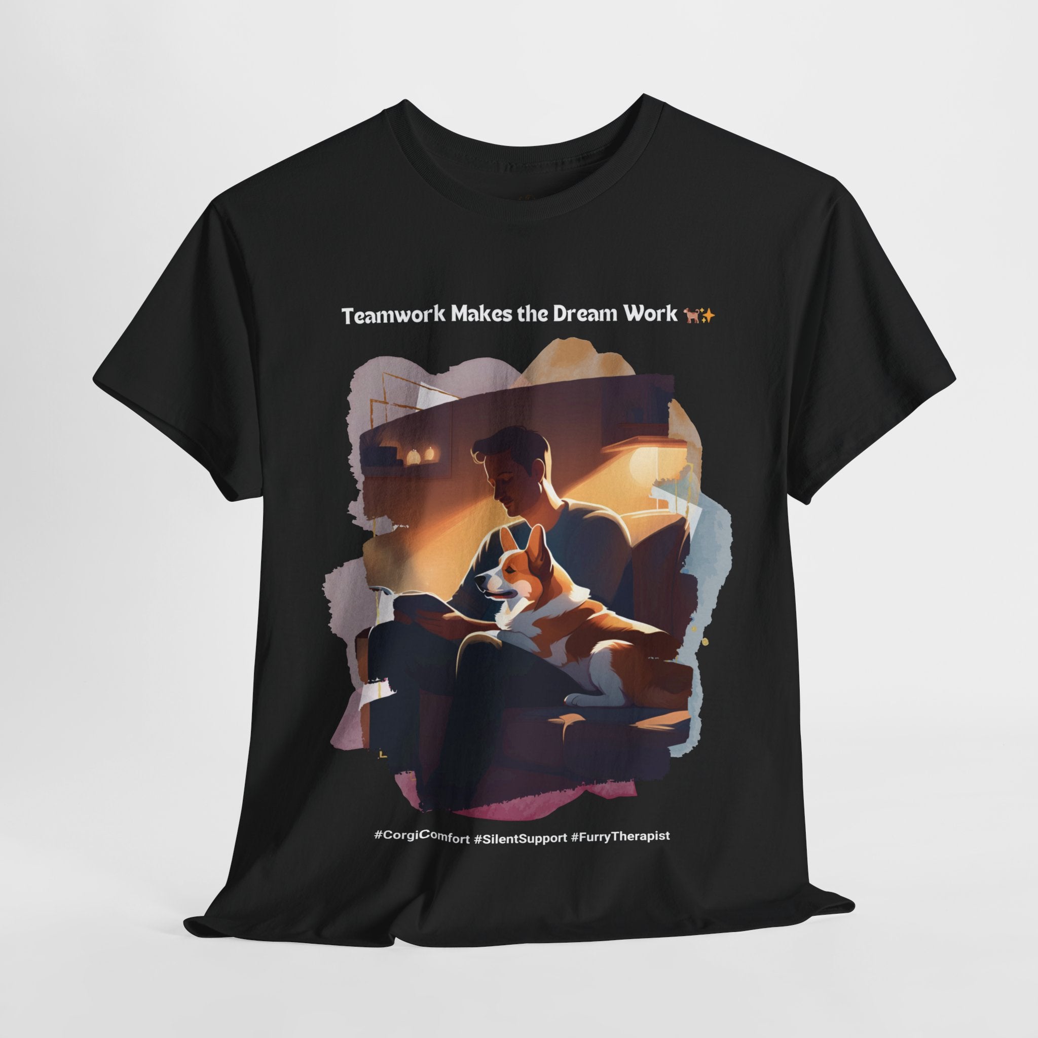 Discover the comforting presence of a Corgi with this heartwarming t-shirt. Featuring the text "In Every Storm, I'm Here for You" and a Corgi image, this design captures the breed's loyalty and emotional support. Perfect for Corgi owners and dog lovers who appreciate the unique bond between humans and their pets.
