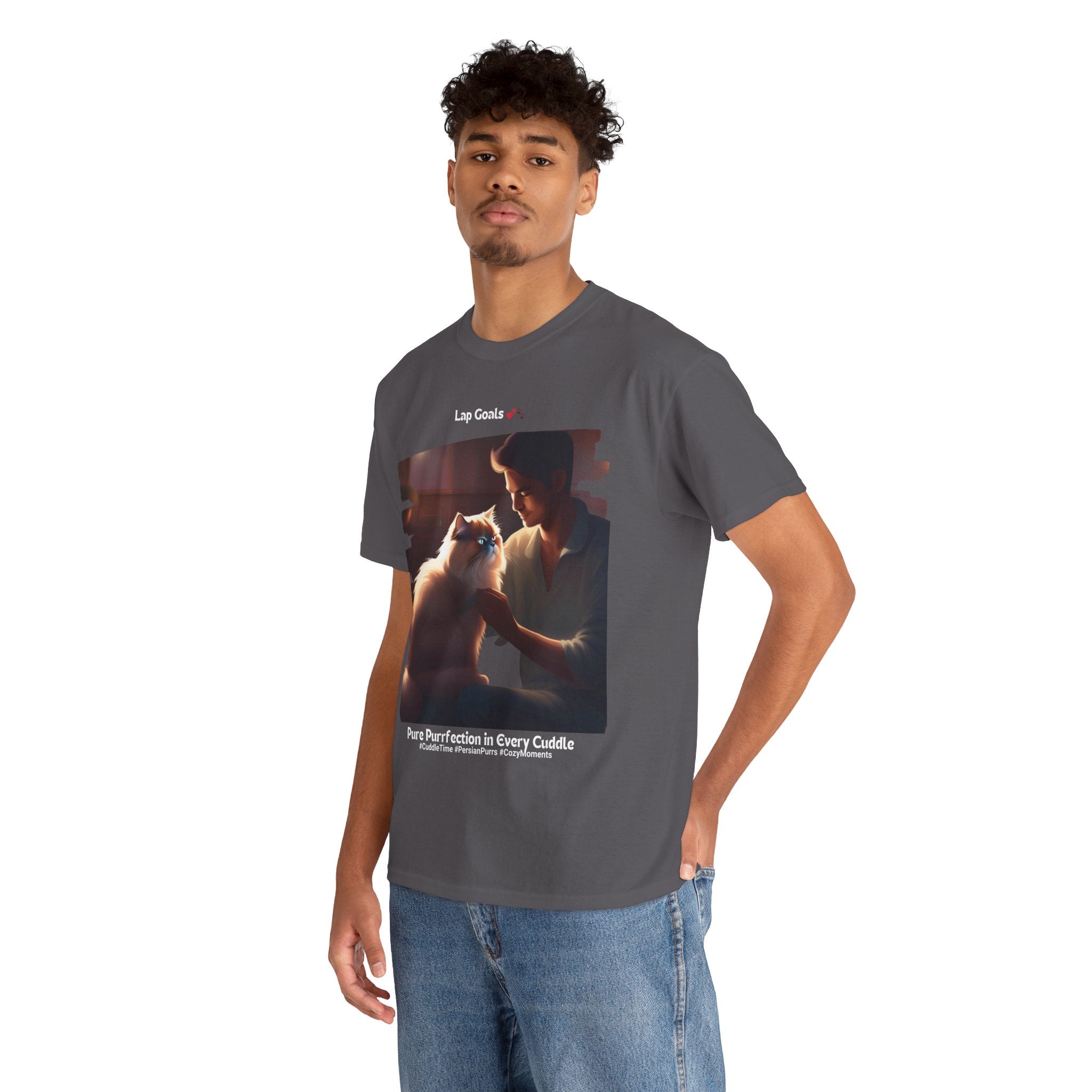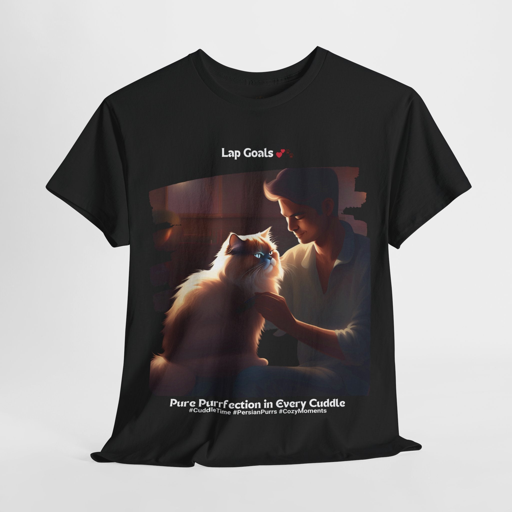 Are you dreaming of the ultimate cuddle buddy? Look no further than the Persian cat. Known for their affectionate nature and love of cozy moments, Persian cats make the ideal lap companions. This t-shirt celebrates the heartwarming bond between a human and their Persian cat, capturing the pure joy and comfort that these furry friends bring.