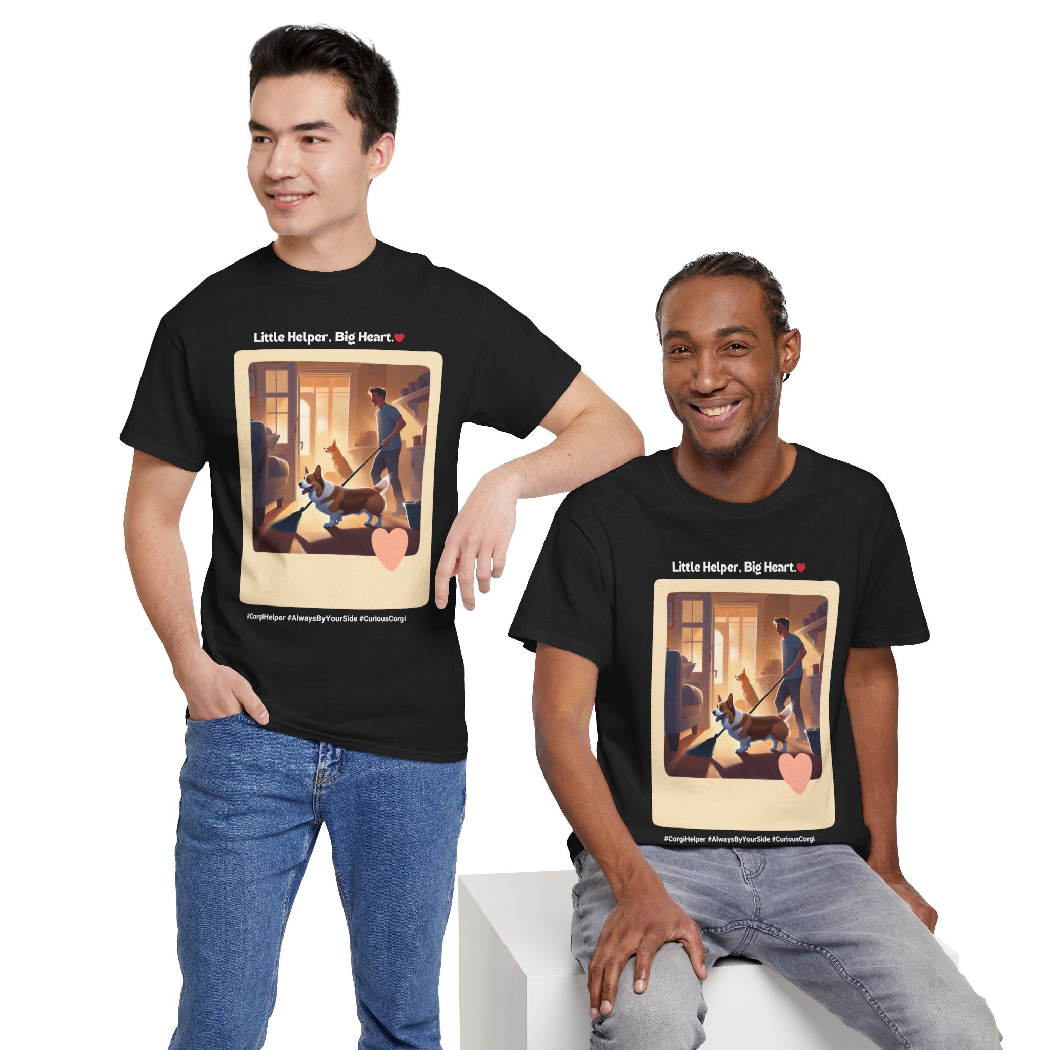 Men’s “Little Helper, Big Heart” Corgi T-Shirt – Sweet Pup Tee, Dog Dad Gift