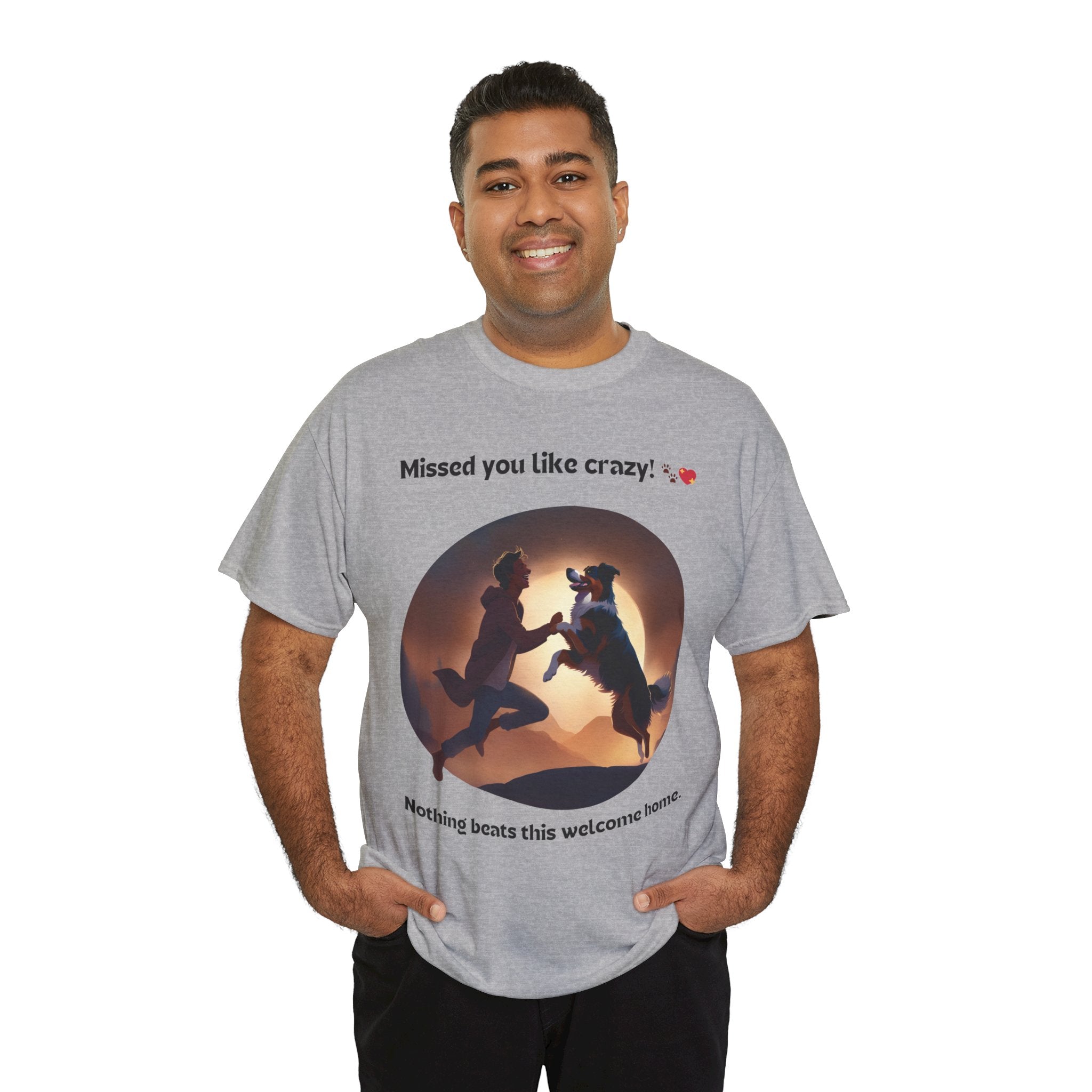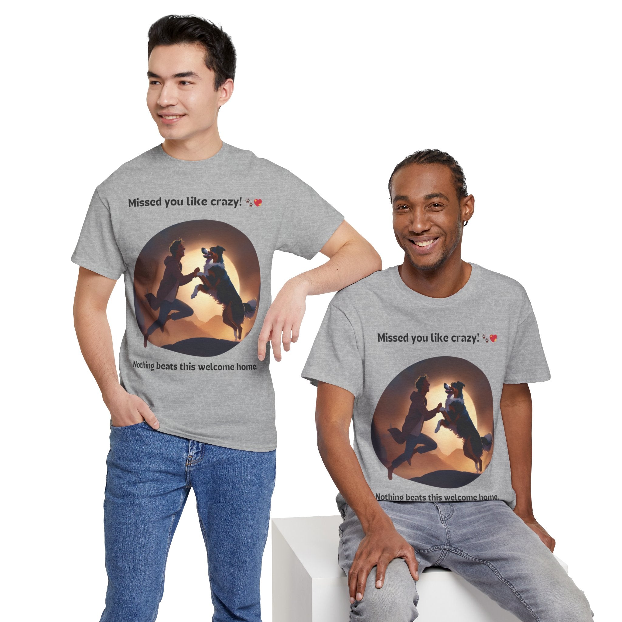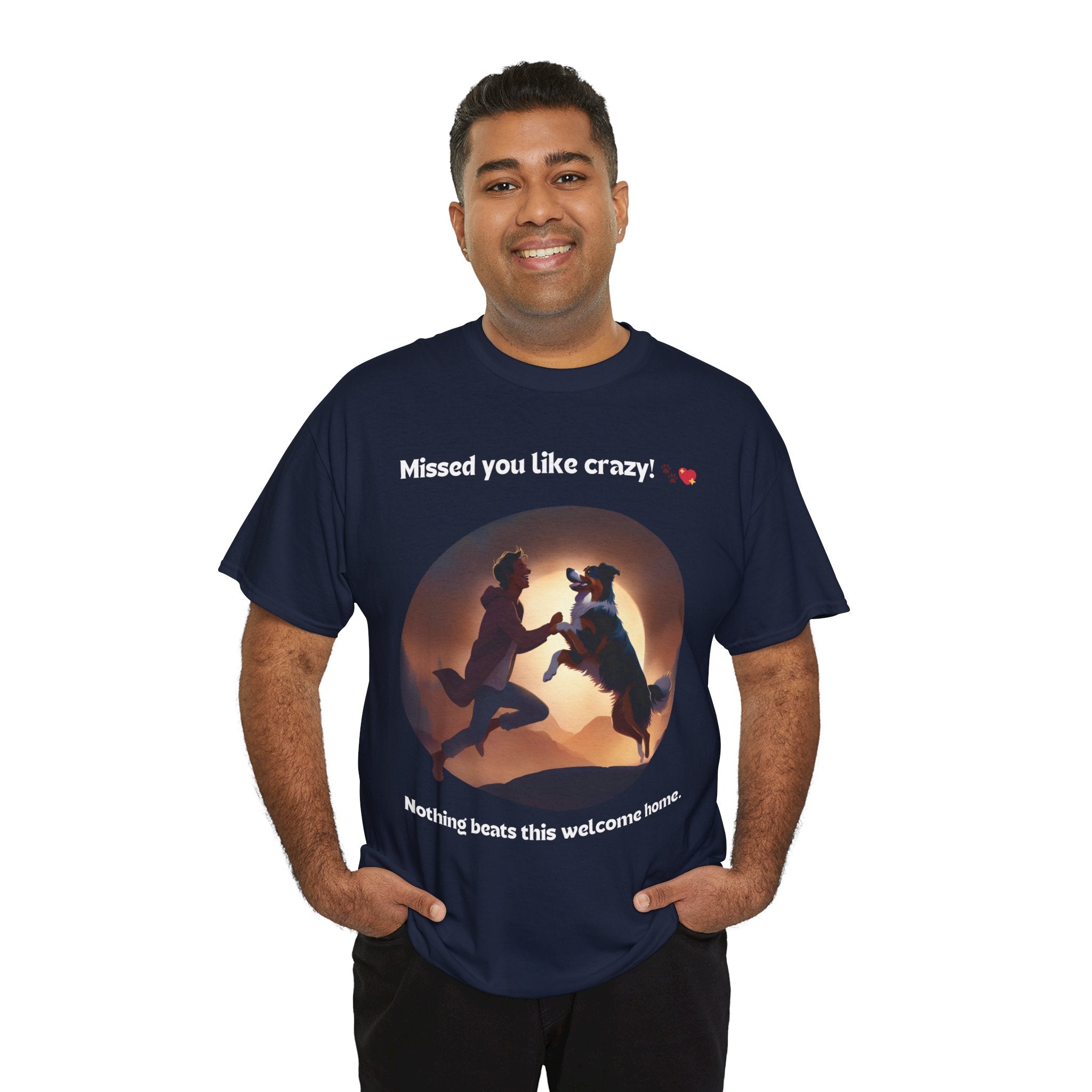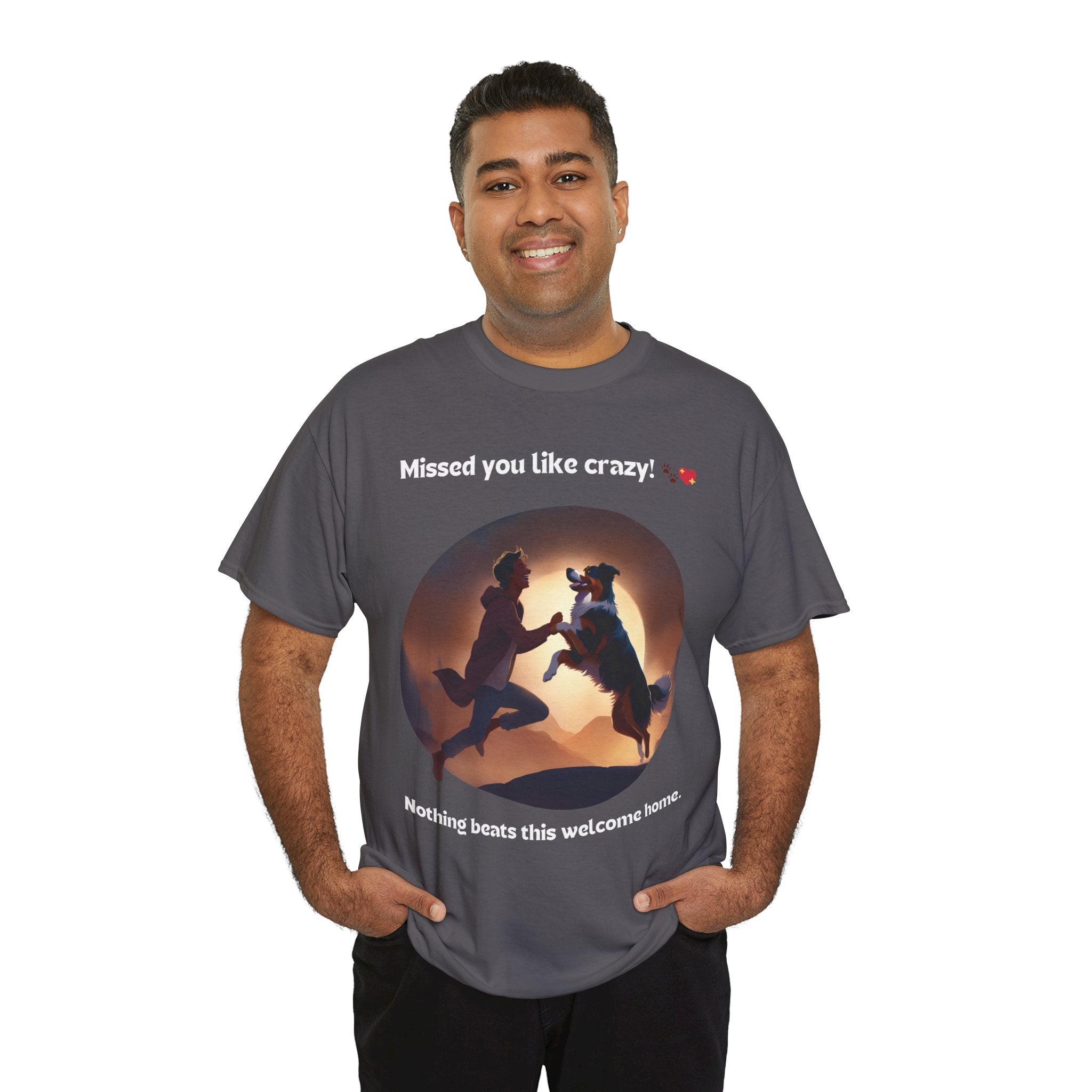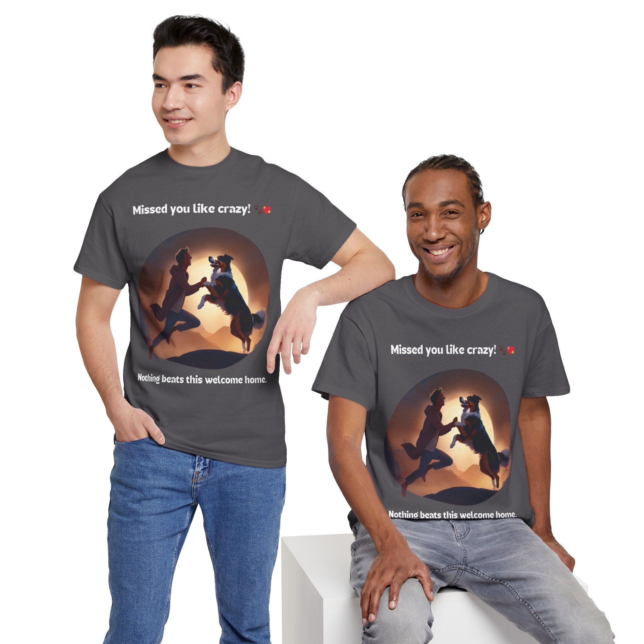Men’s “Missed You Like Crazy” Australian Shepherd T‑Shirt – Reunion Pup Dad Gift