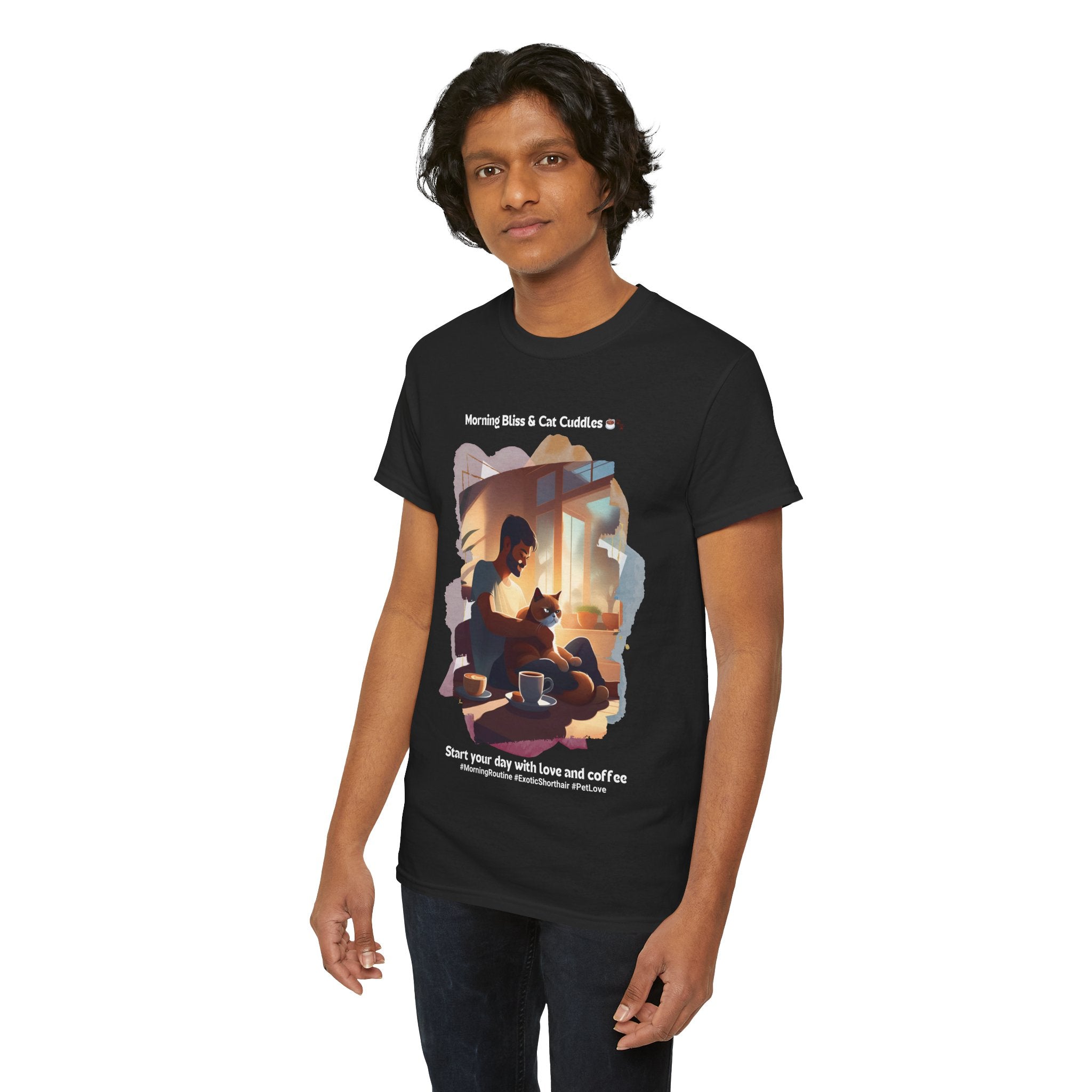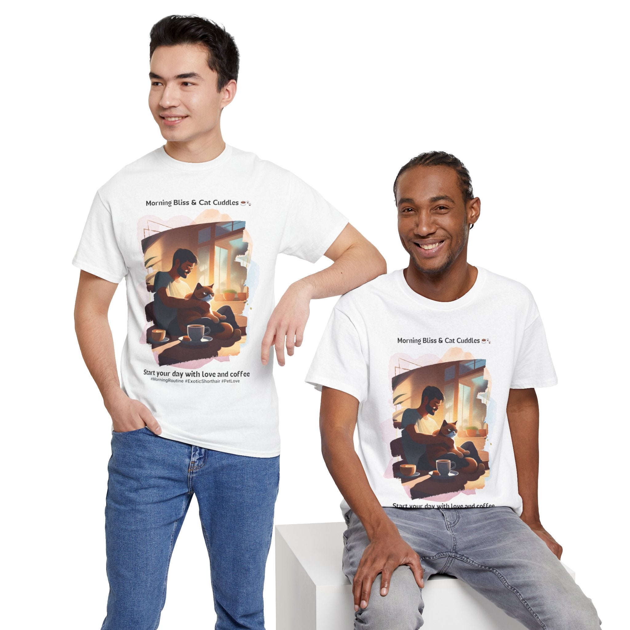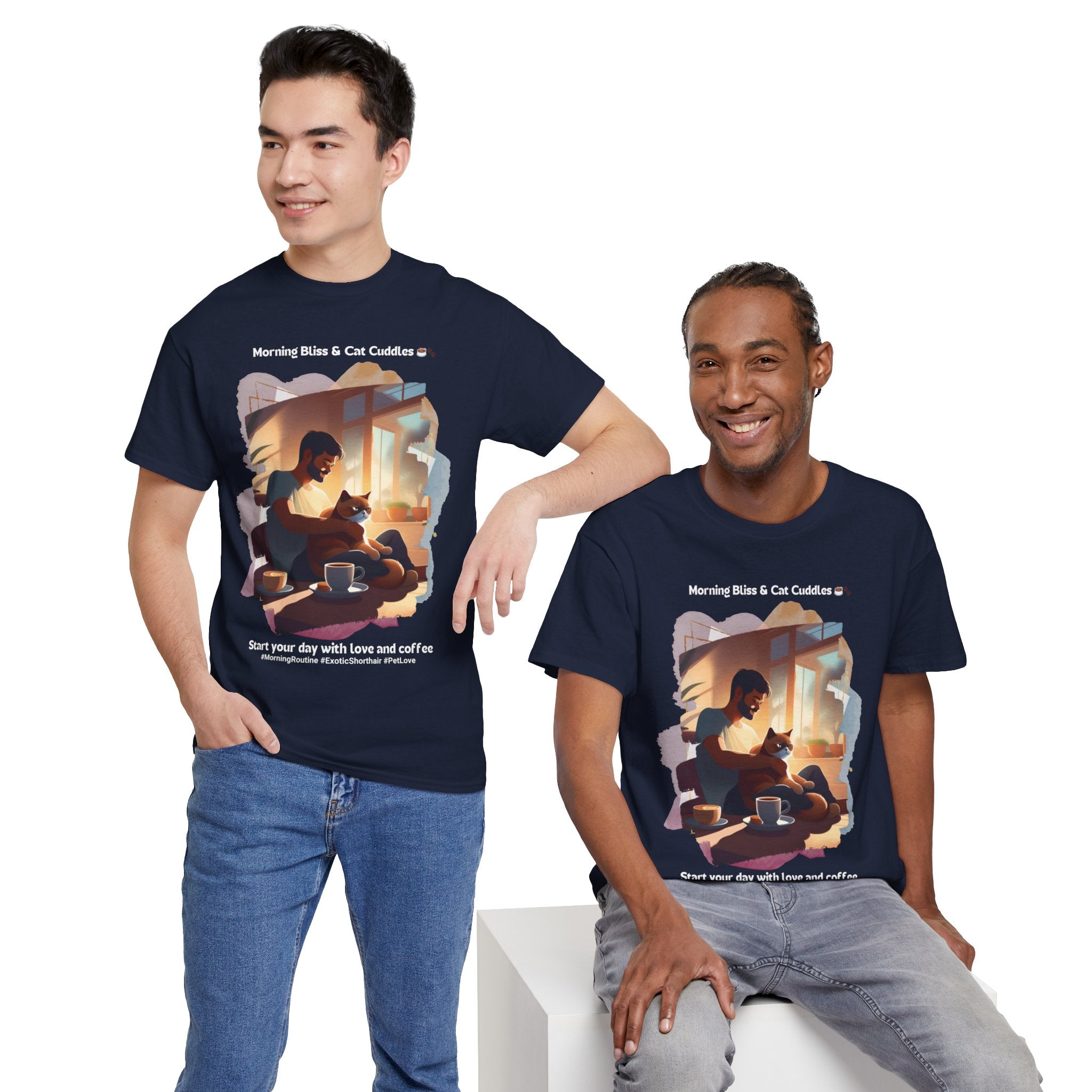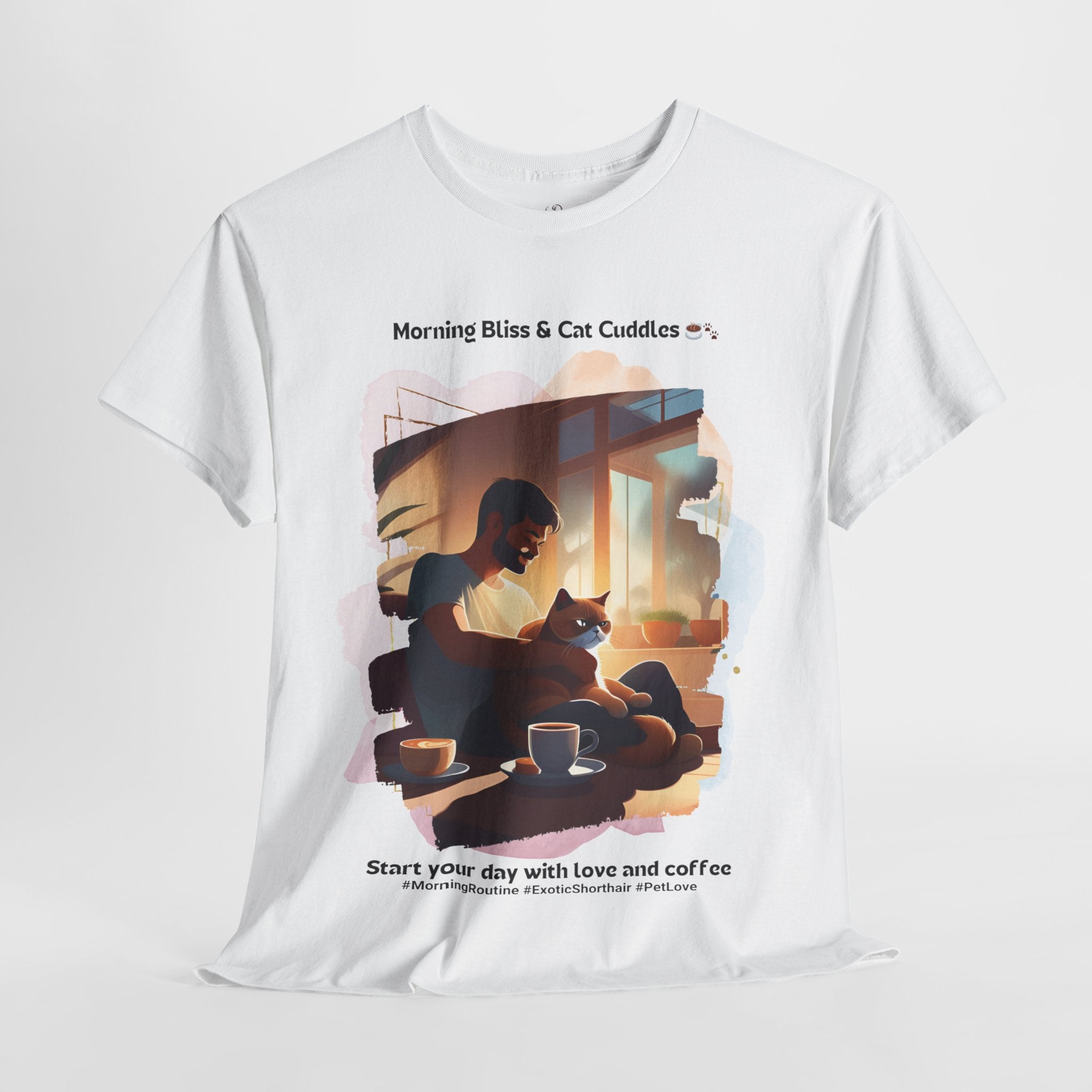 Men’s “Morning Bliss & Cat Cuddles” Exotic Shorthair T‑Shirt – Cuddle Cat Dad Gift
