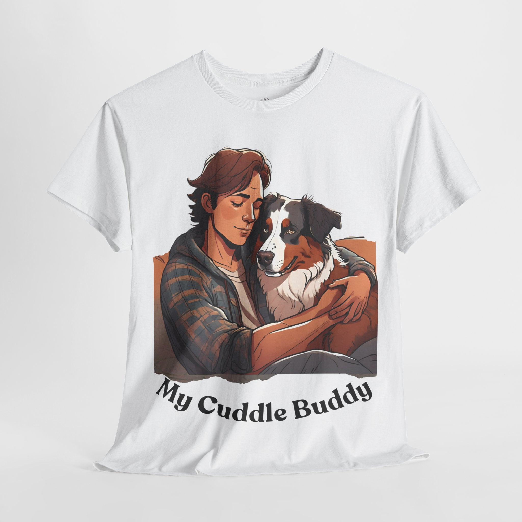 Men’s “My Cuddle Buddy” Australian Shepherd T‑Shirt – Snuggle Partner Dad Gift