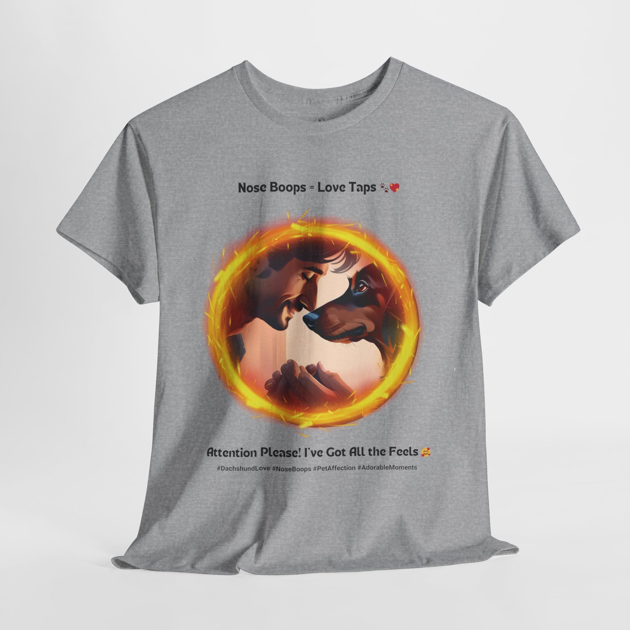 Men’s “Nose Boops = Love Taps” Dachshund T‑Shirt – Affectionate Pup Dad Gift