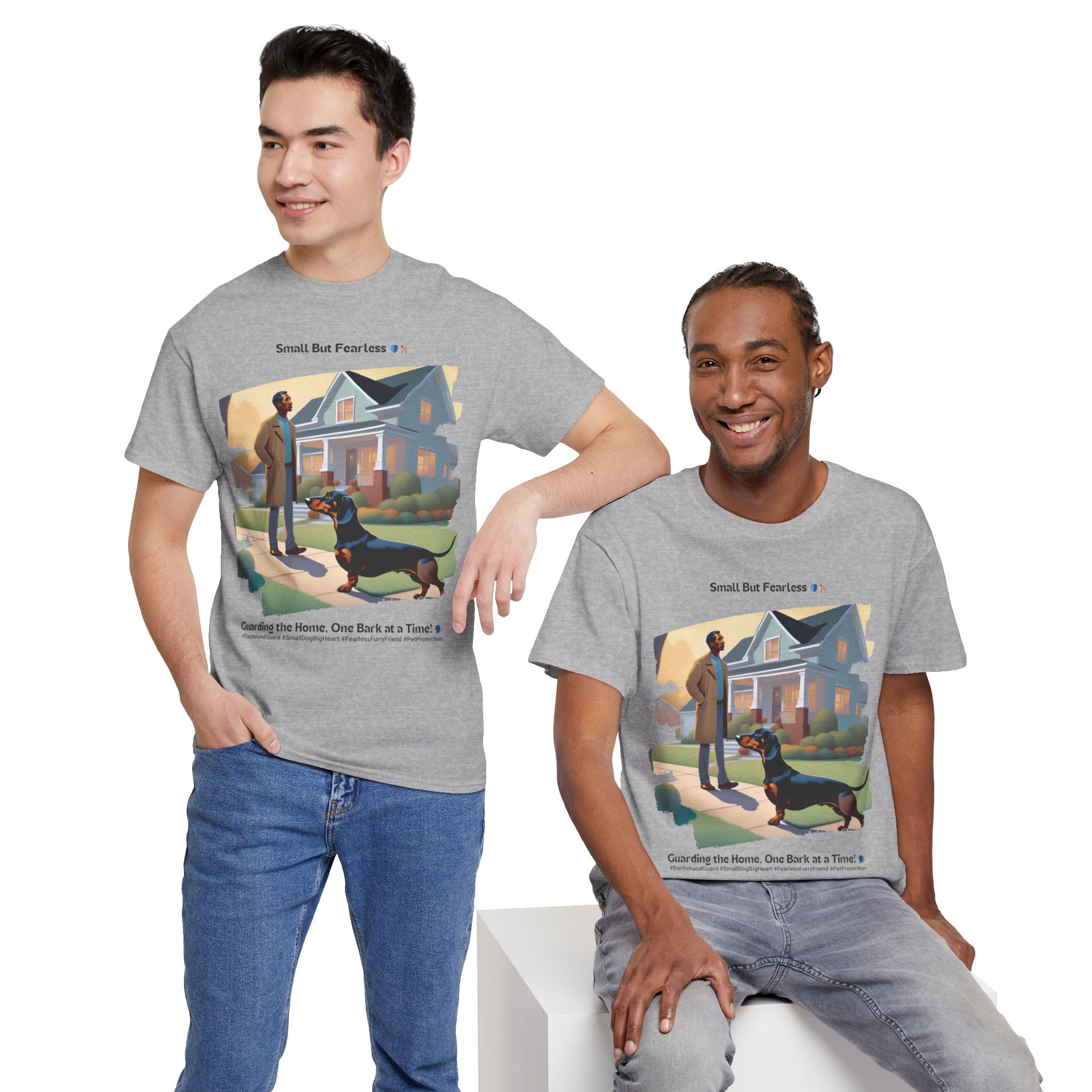 Men’s “Small But Fearless” Dachshund T‑Shirt – Brave Pup Dad Gift