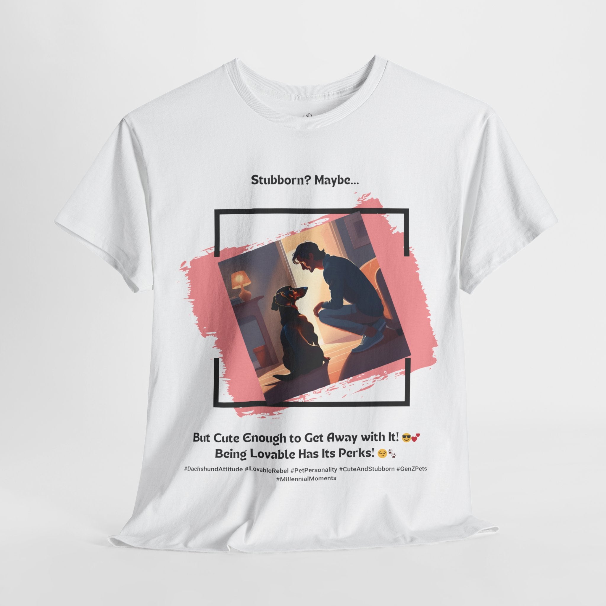 Men’s “Stubborn? Maybe… But Cute Enough” Dachshund T-Shirt – Wiener Dog Charm, Dog Dad Gift