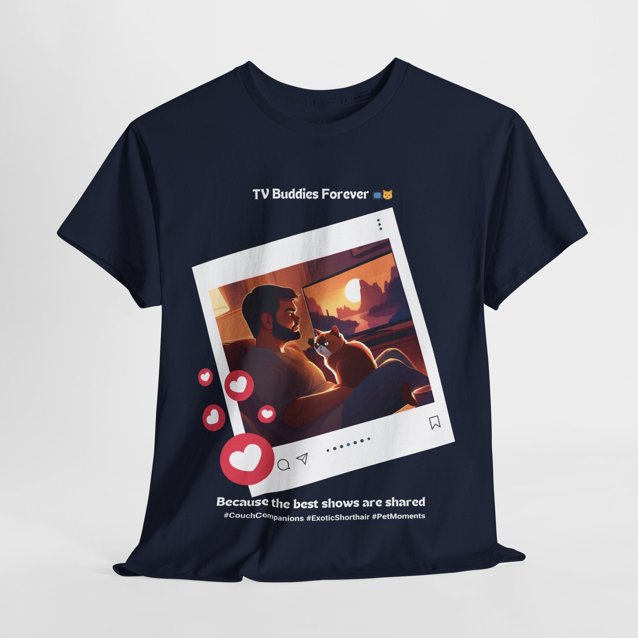 Men’s “TV Buddies Forever” Exotic Shorthair T‑Shirt – Cozy Night Cat Dad Gift