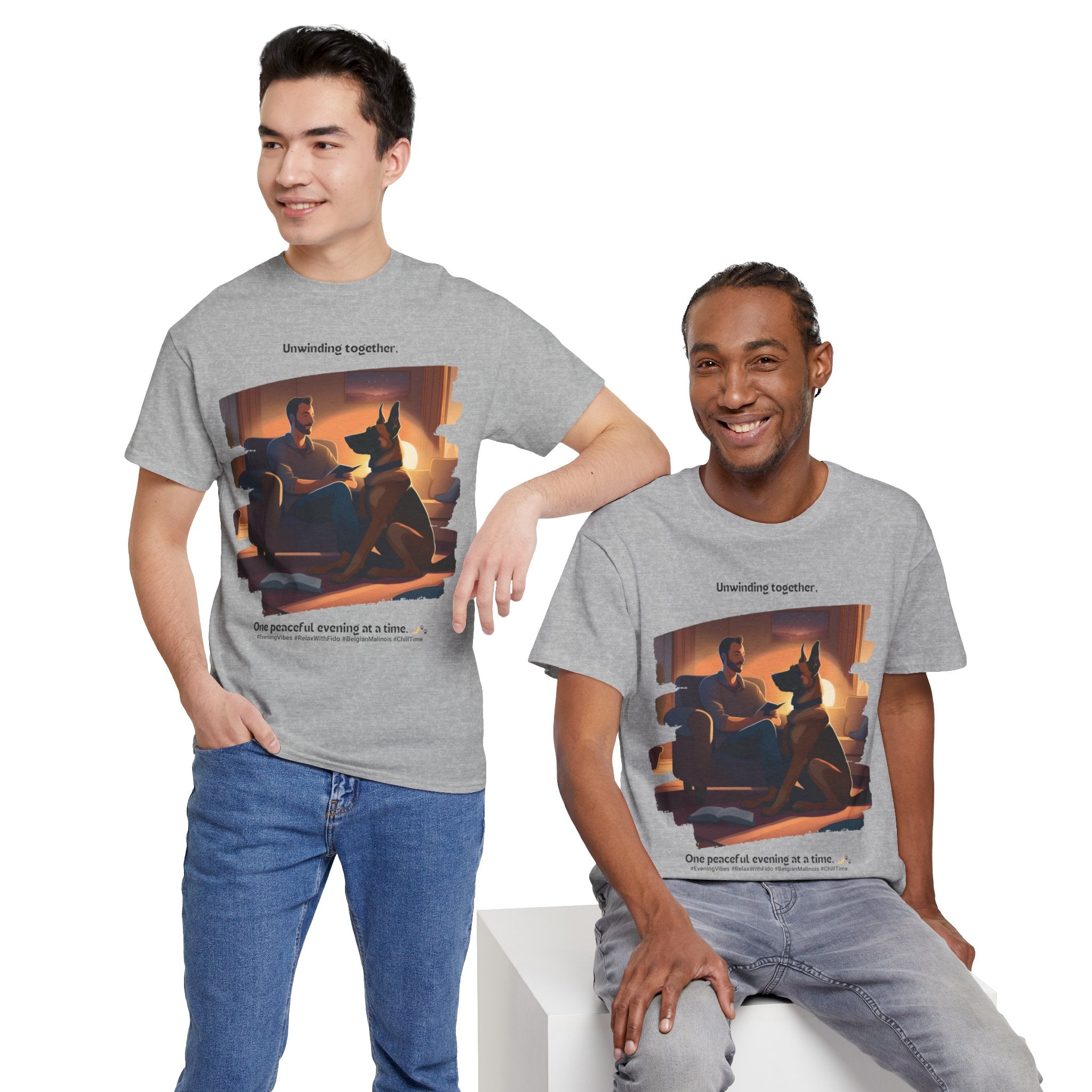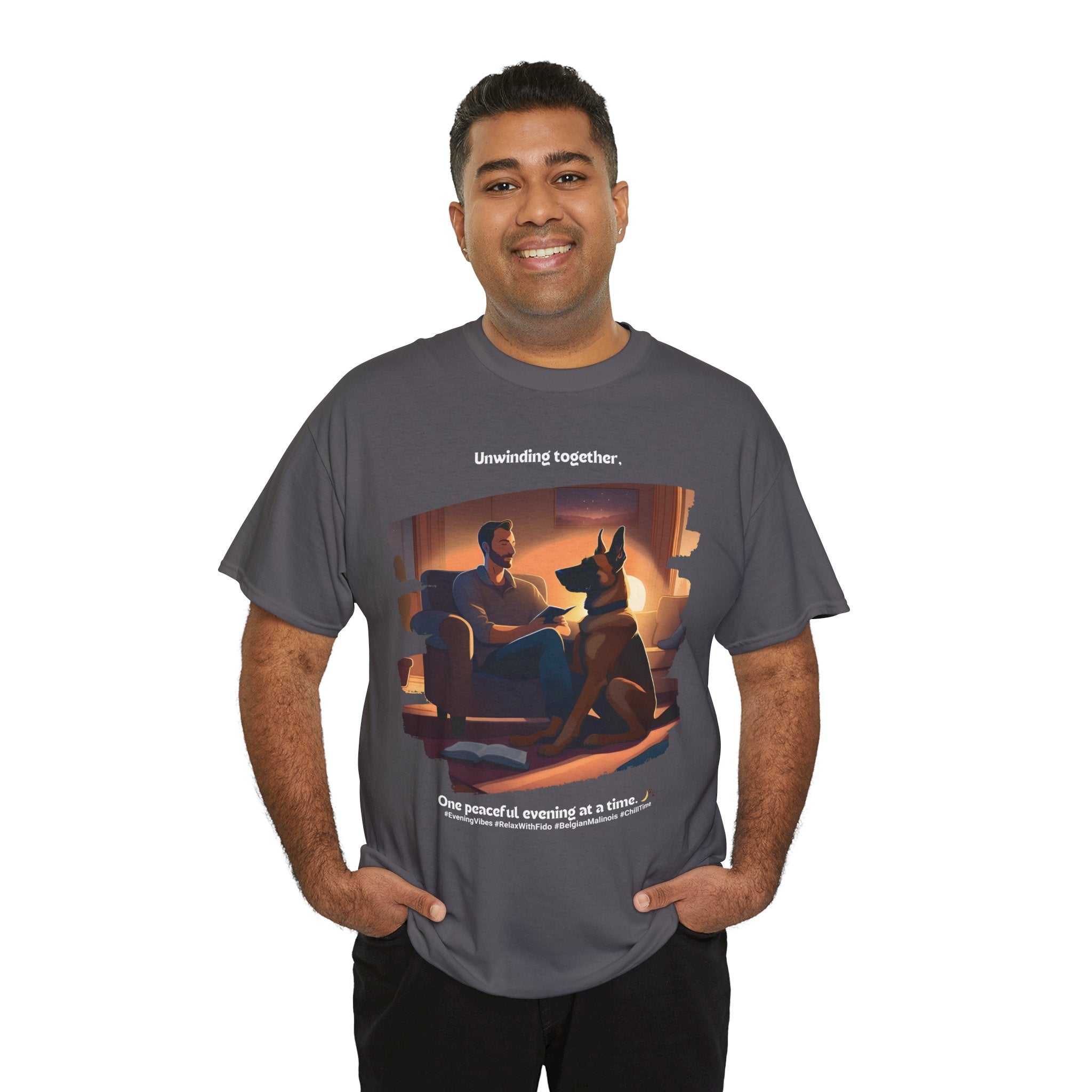 Men’s “Unwinding Together” Belgian Malinois T‑Shirt – Relaxation Gift, Bonding Dad Tee