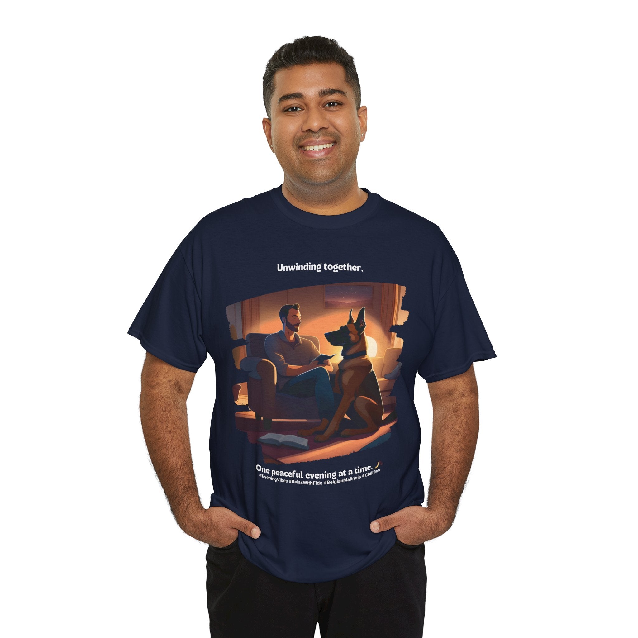 Are you a proud Belgian Malinois owner who cherishes the calm and peaceful moments you share with your furry friend? This t-shirt is a must-have for any dog parent who appreciates the comfort and companionship their canine companion brings to their life. Our design features a Belgian Malinois relaxing on the couch with their human, perfect for capturing those cozy evenings spent together.