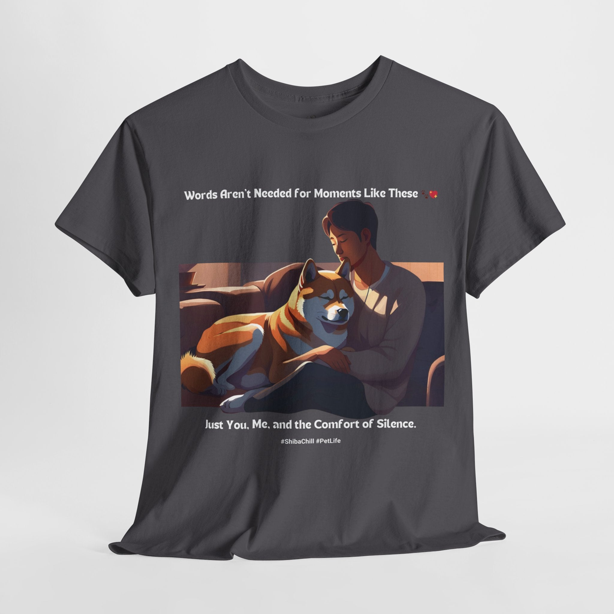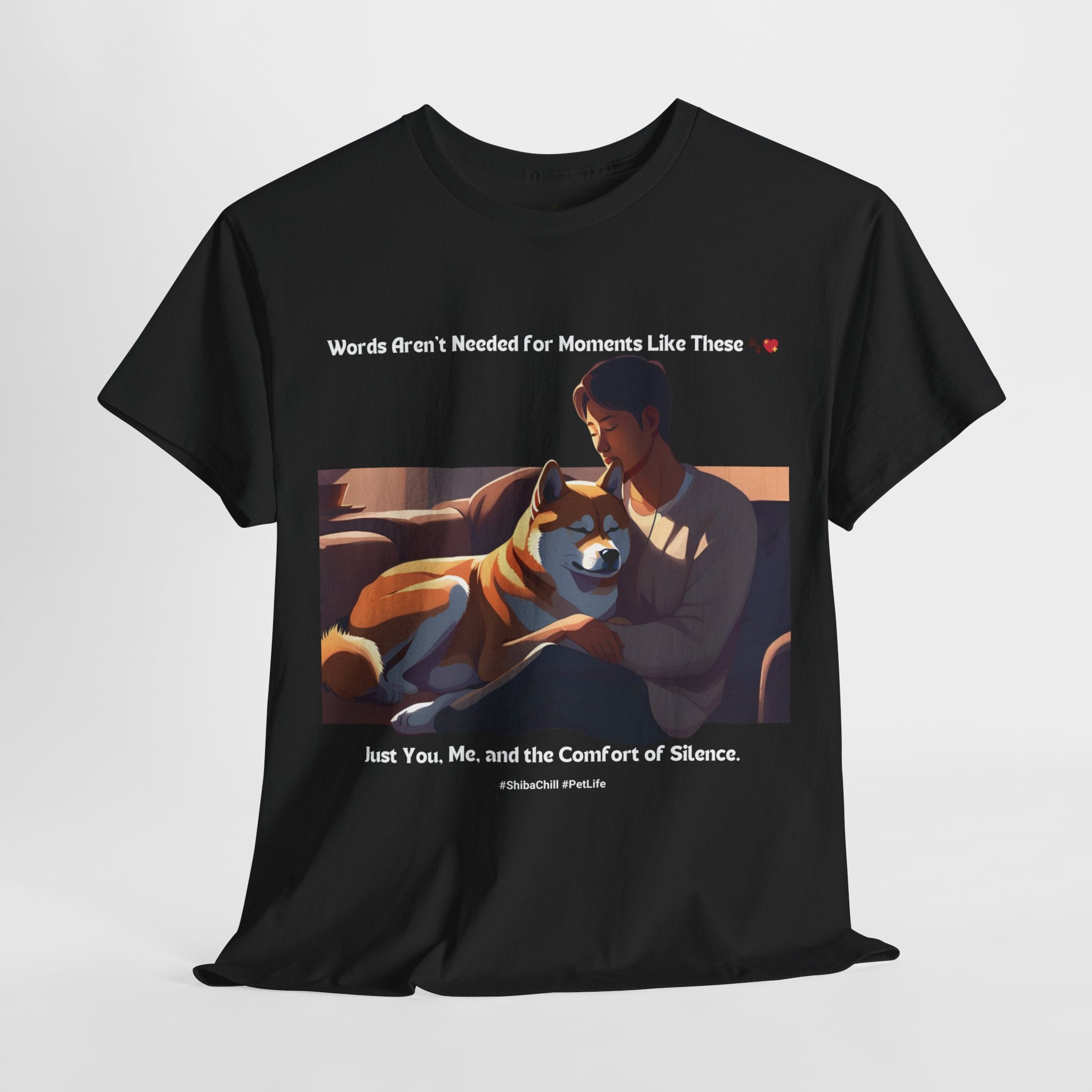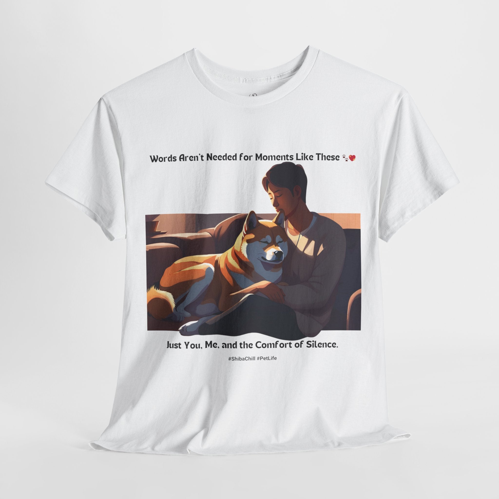 Are you a proud Shiba Inu owner who cherishes the peaceful moments spent in quiet companionship with your furry friend? This t-shirt is a must-have for any dog parent who appreciates the serene and calming presence of the Shiba Inu breed. Our design captures the tranquility of a Shiba Inu resting peacefully beside their human, reminding us of the simple joy of shared silence.