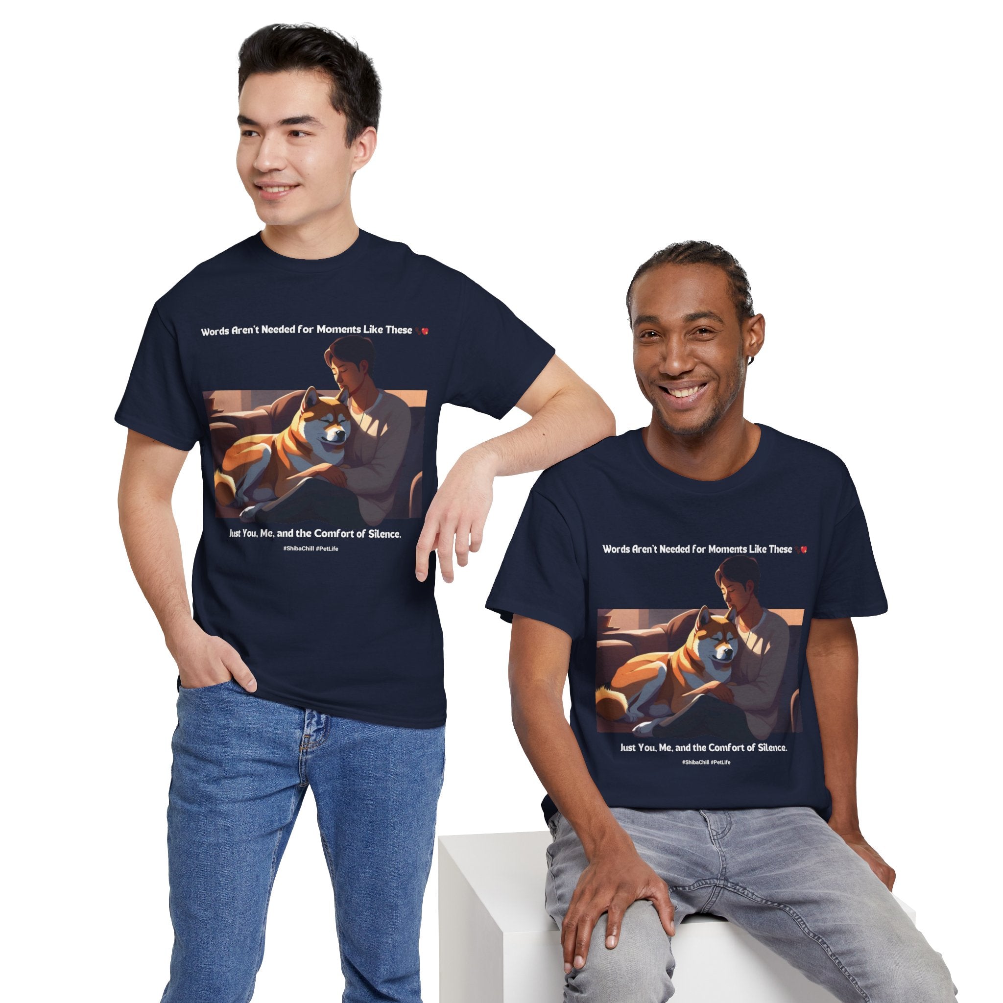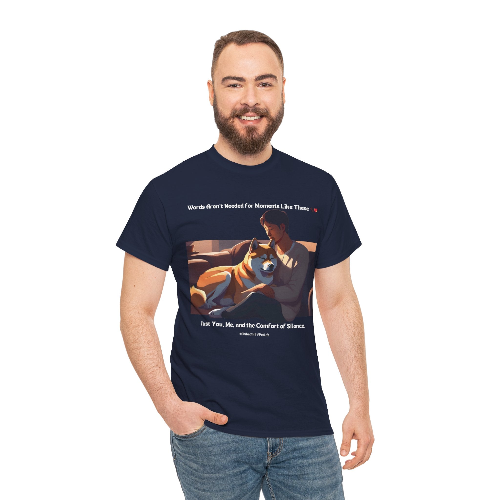 Men’s “Words Aren’t Needed” Shiba Inu T‑Shirt – Serene Pup Dad Gift