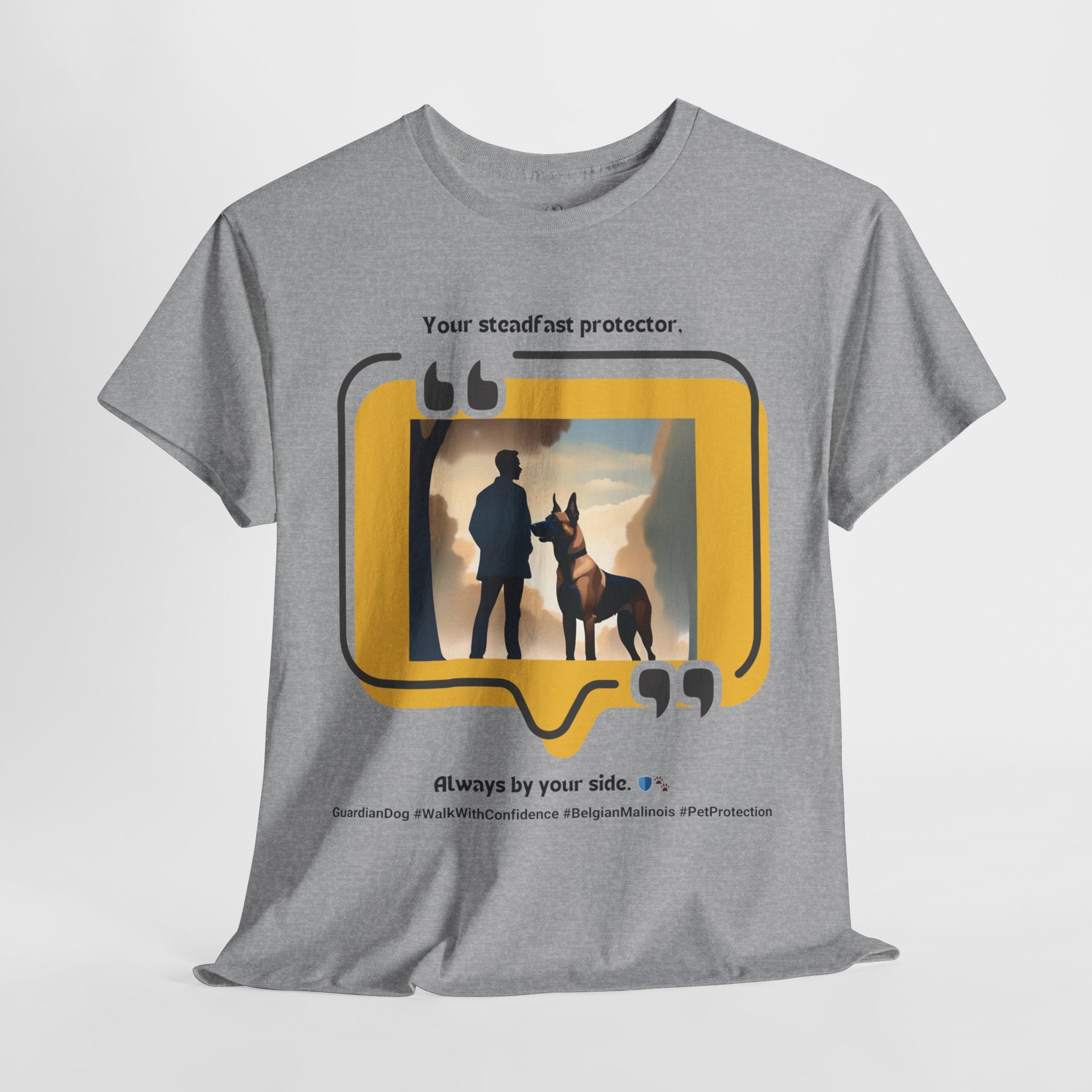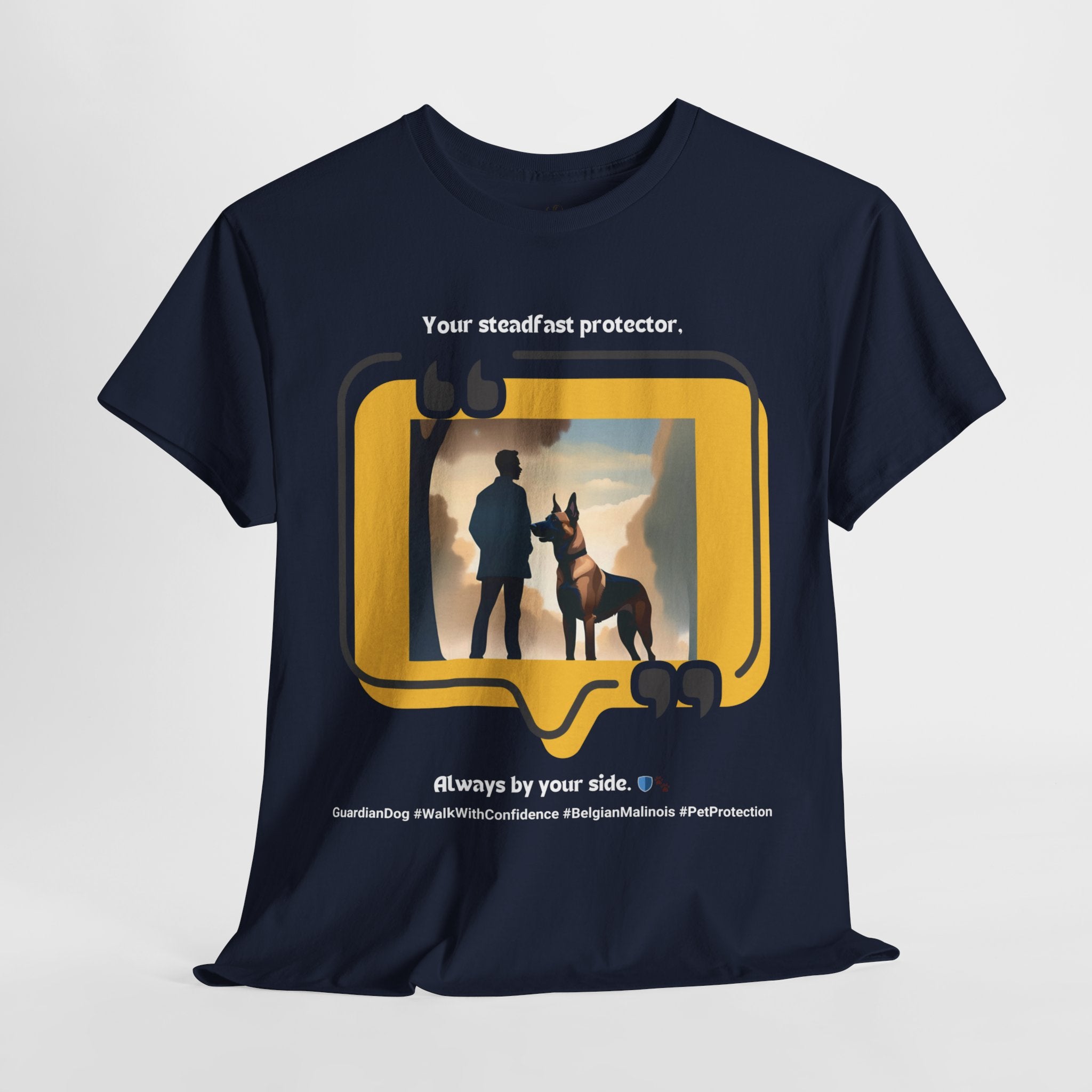 Are you a proud Belgian Malinois owner who cherishes your furry friend's loyalty and protective nature? This t-shirt is a must-have for any dog parent who appreciates the incredible bond they share with their canine companion. Our design features a Belgian Malinois standing guard beside their human, showcasing the breed's unwavering devotion and protective instincts.