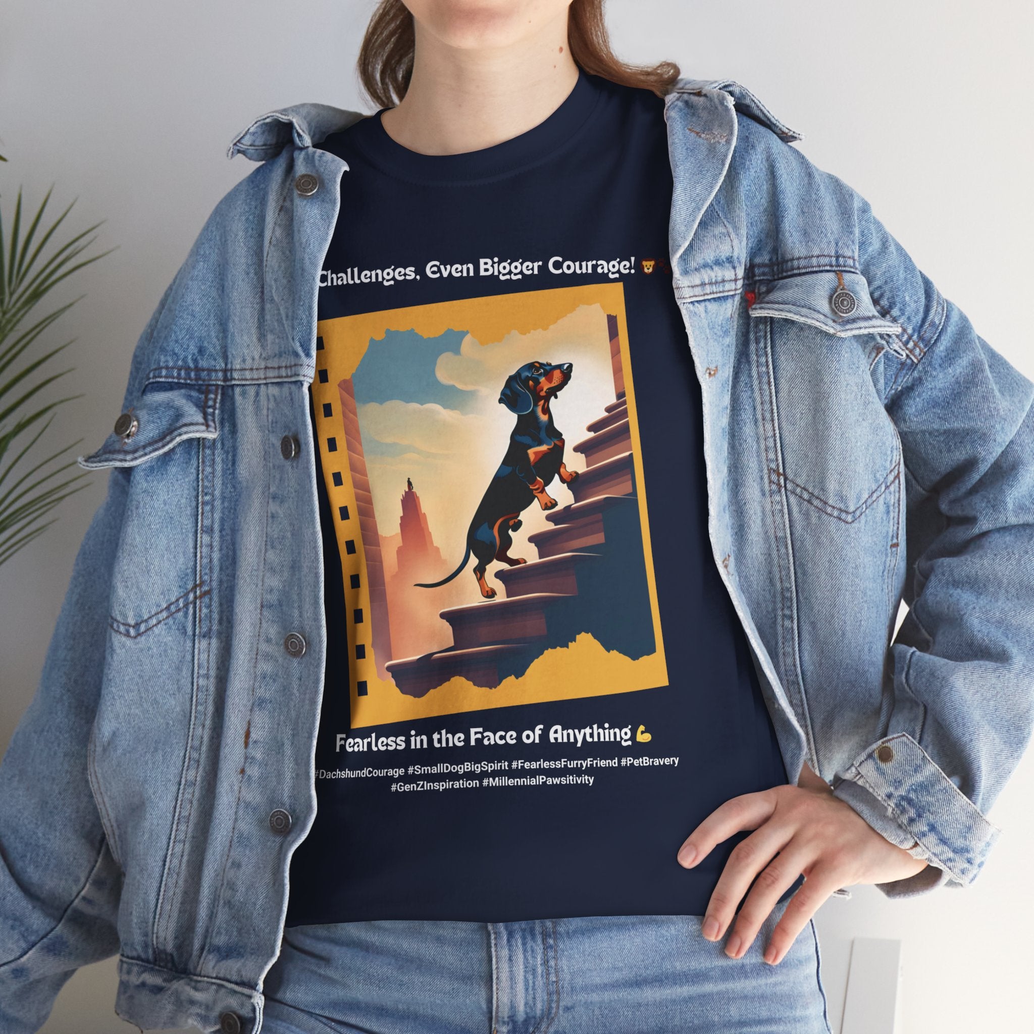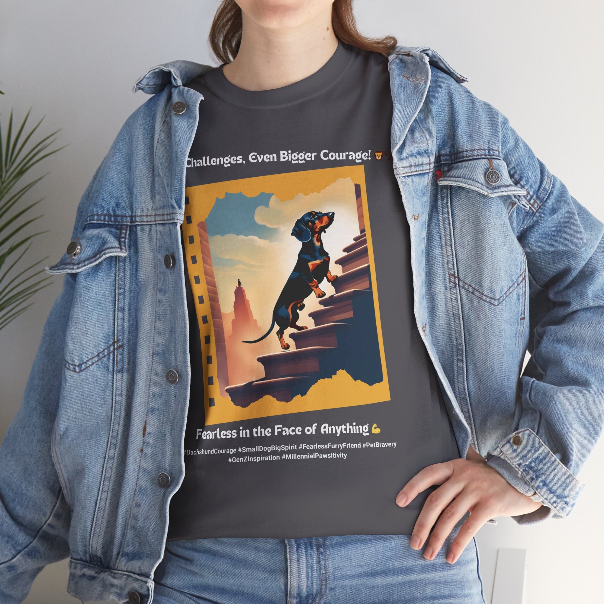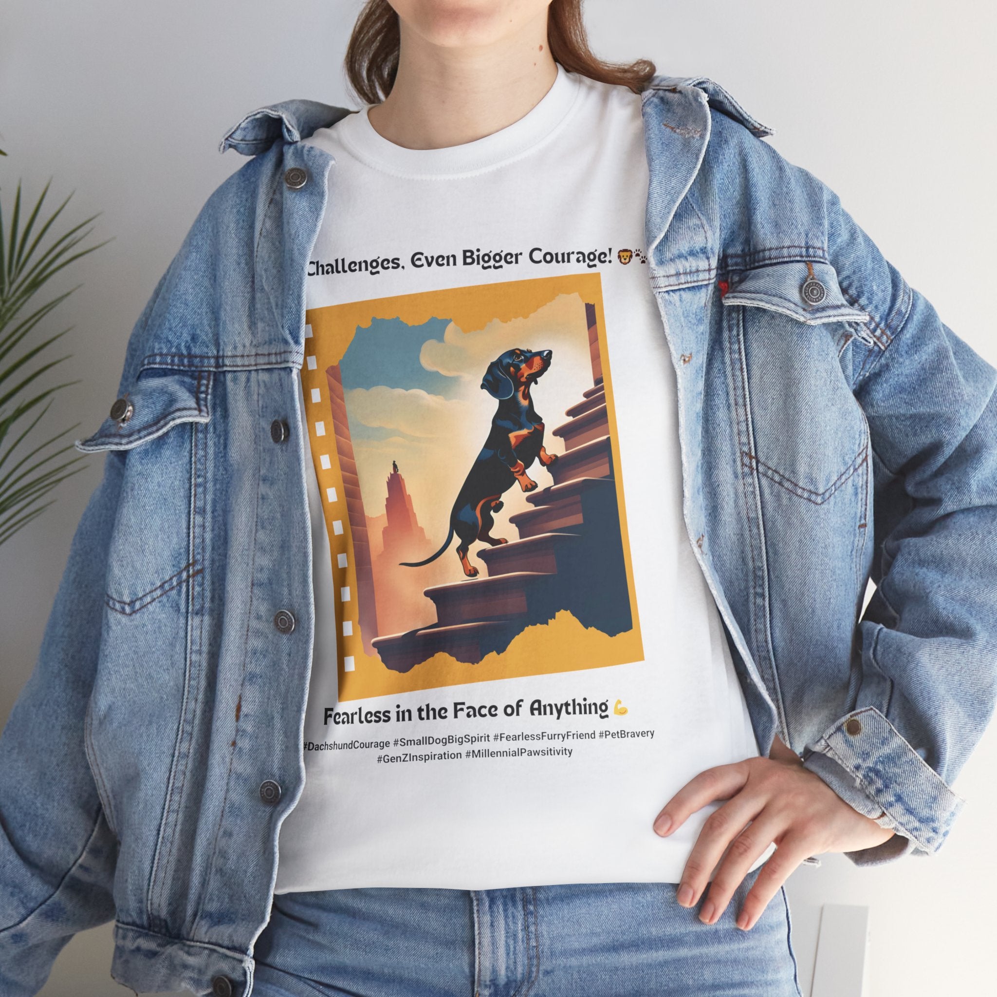 Unisex “Big Challenges, Even Bigger Courage” Dachshund T-Shirt – Brave Wiener Dog, Pet Lover Gift