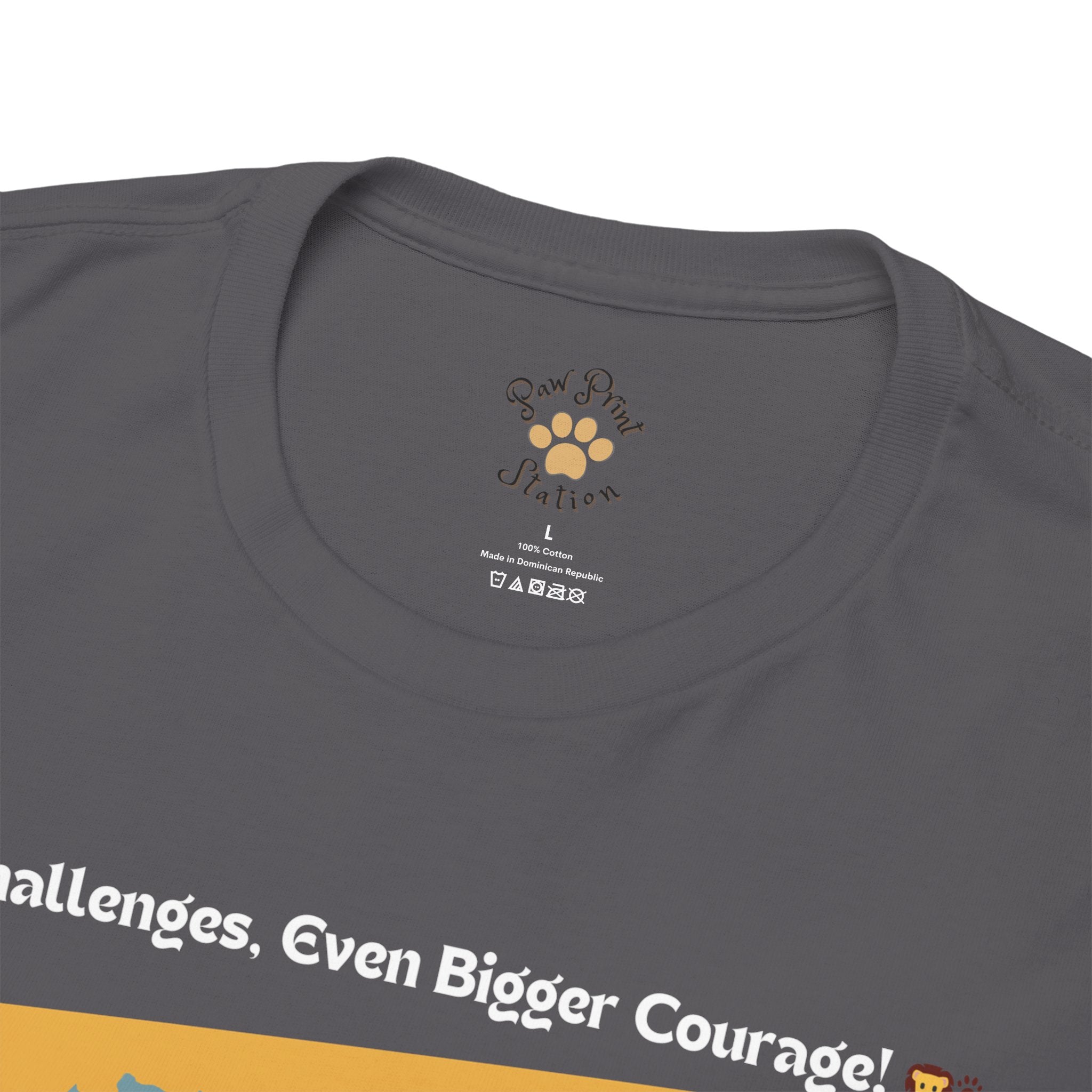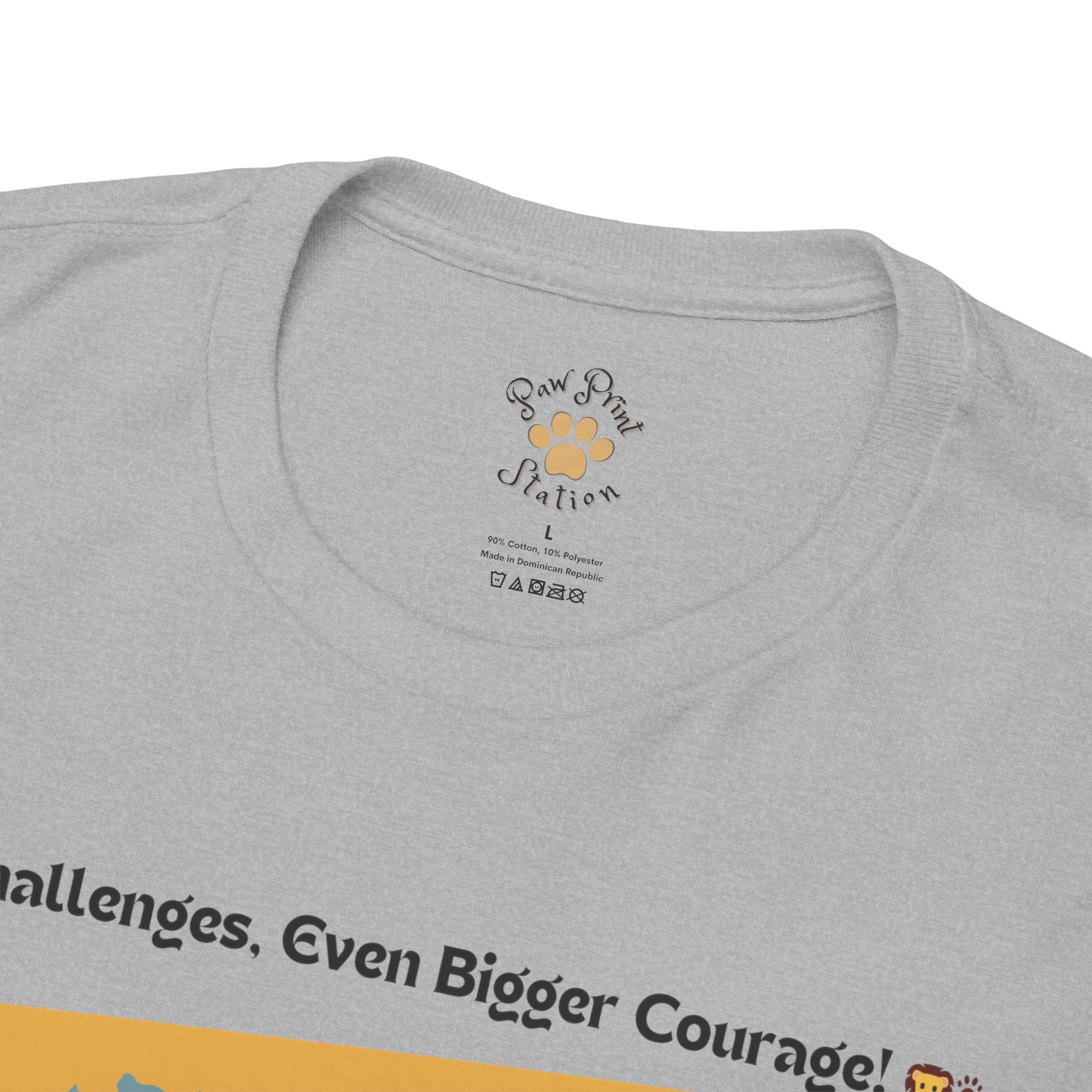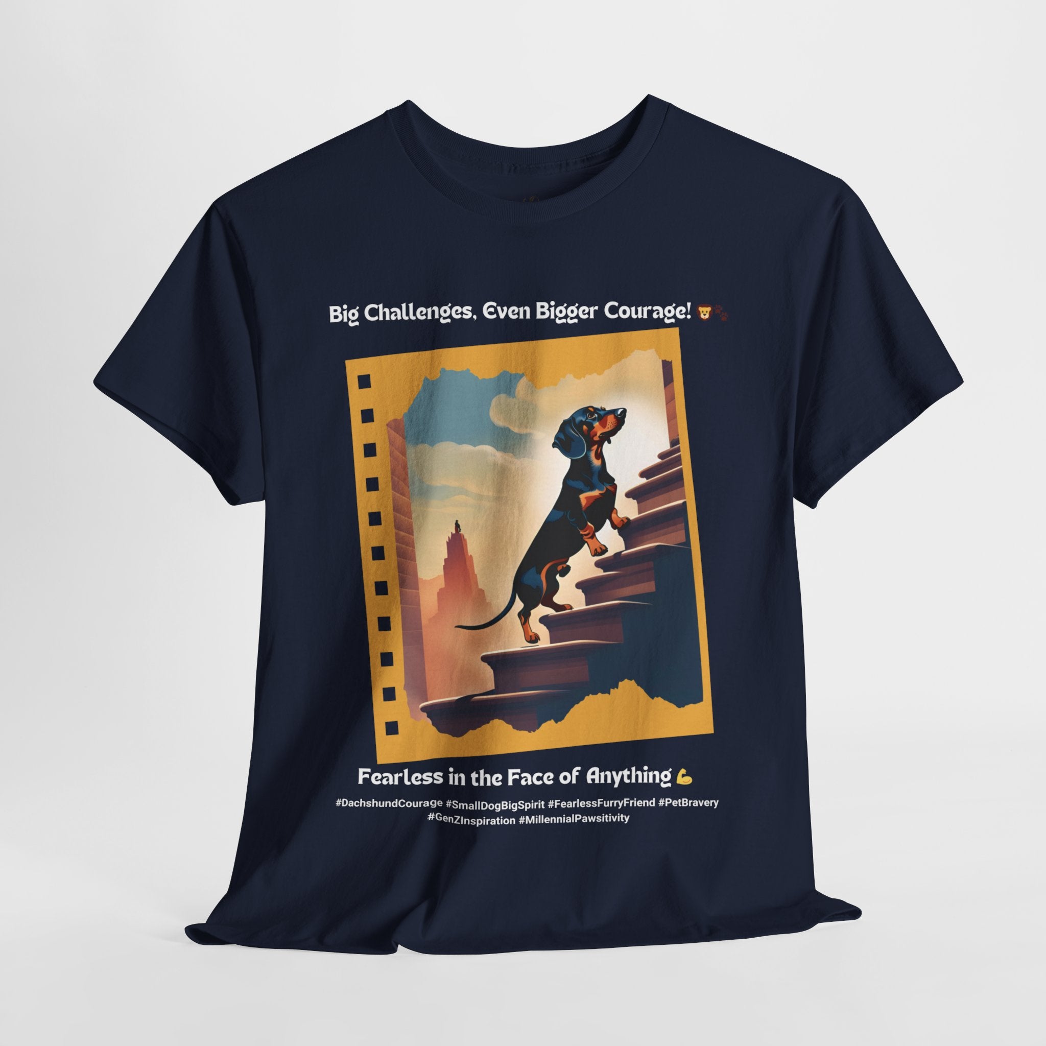 Unisex “Big Challenges, Even Bigger Courage” Dachshund T-Shirt – Brave Wiener Dog, Pet Lover Gift