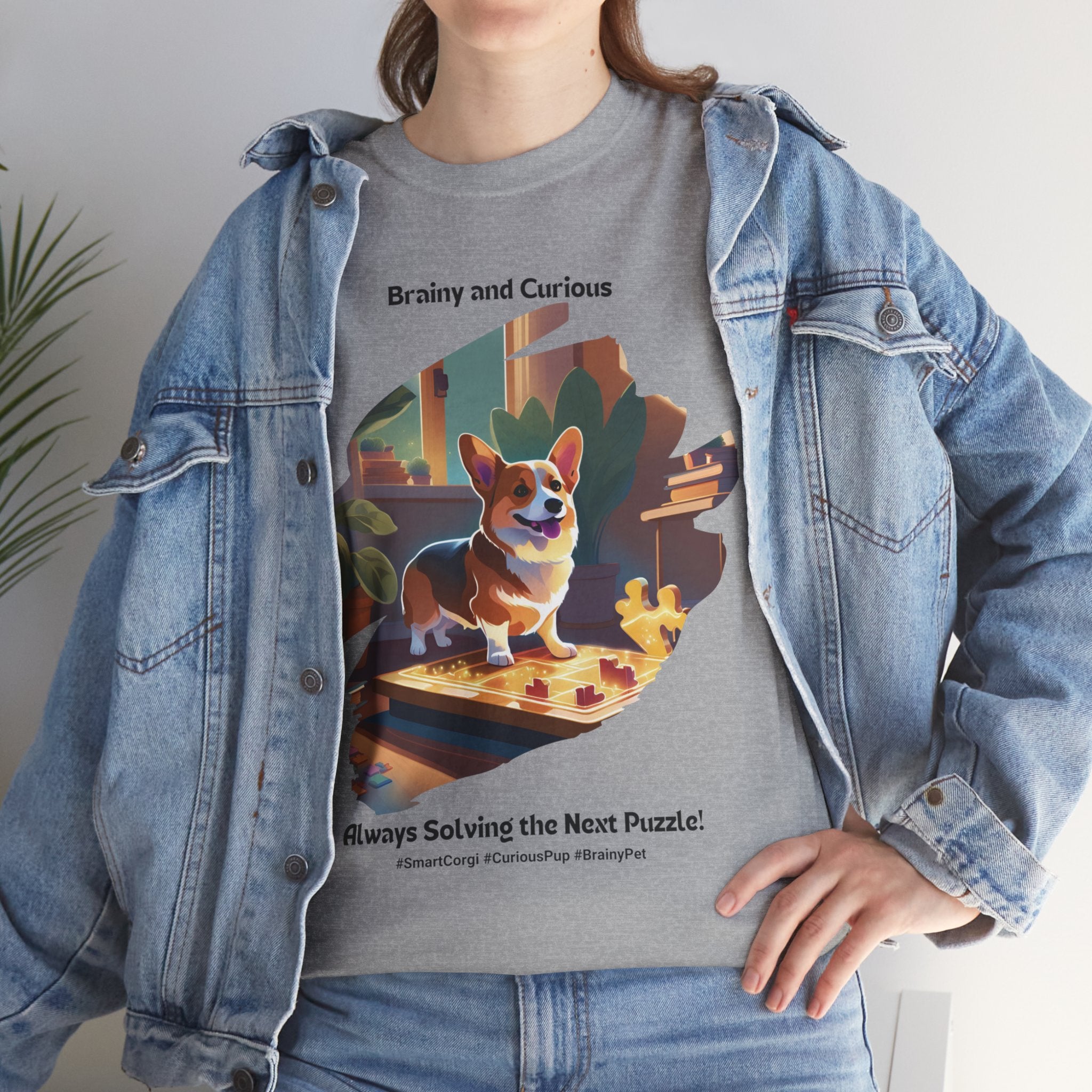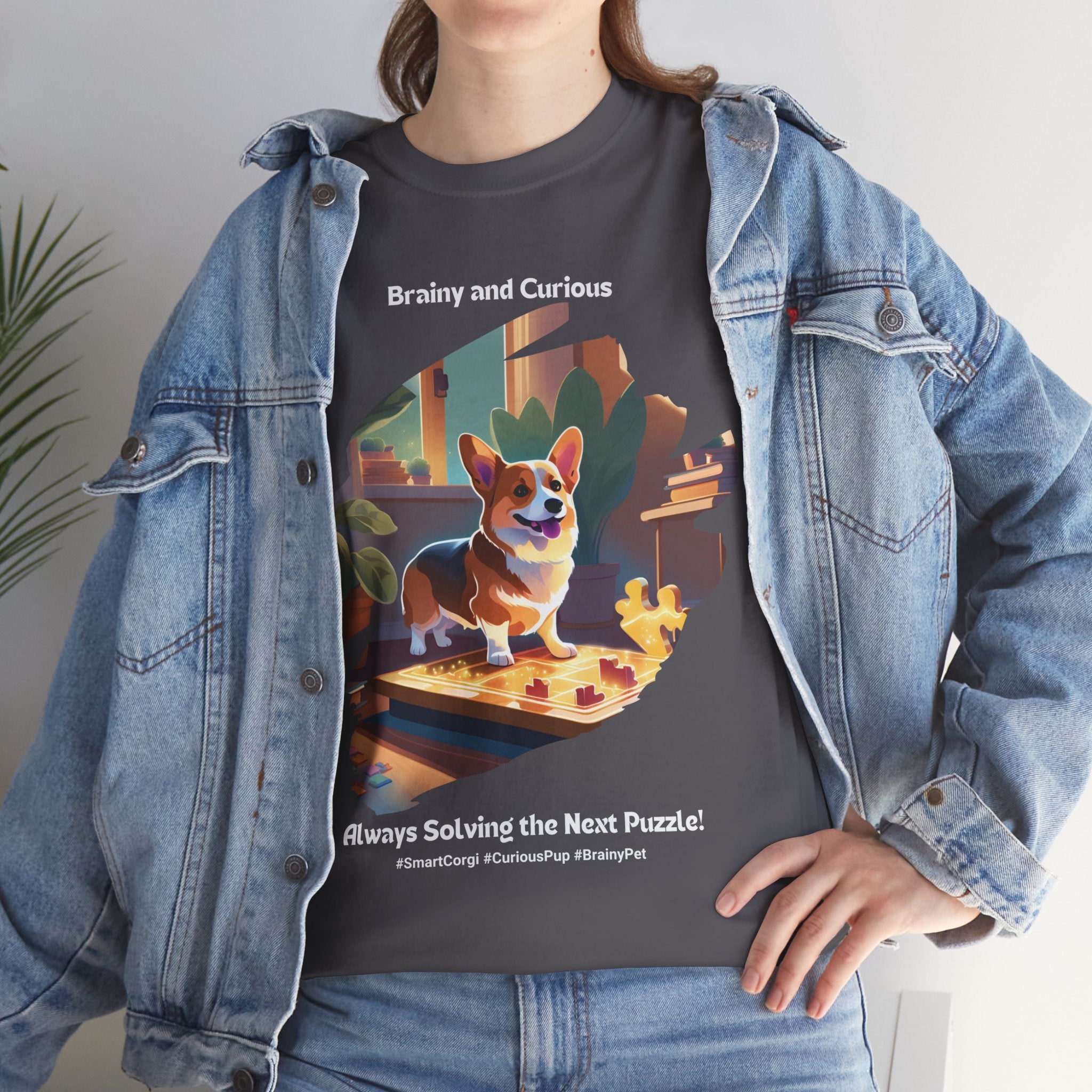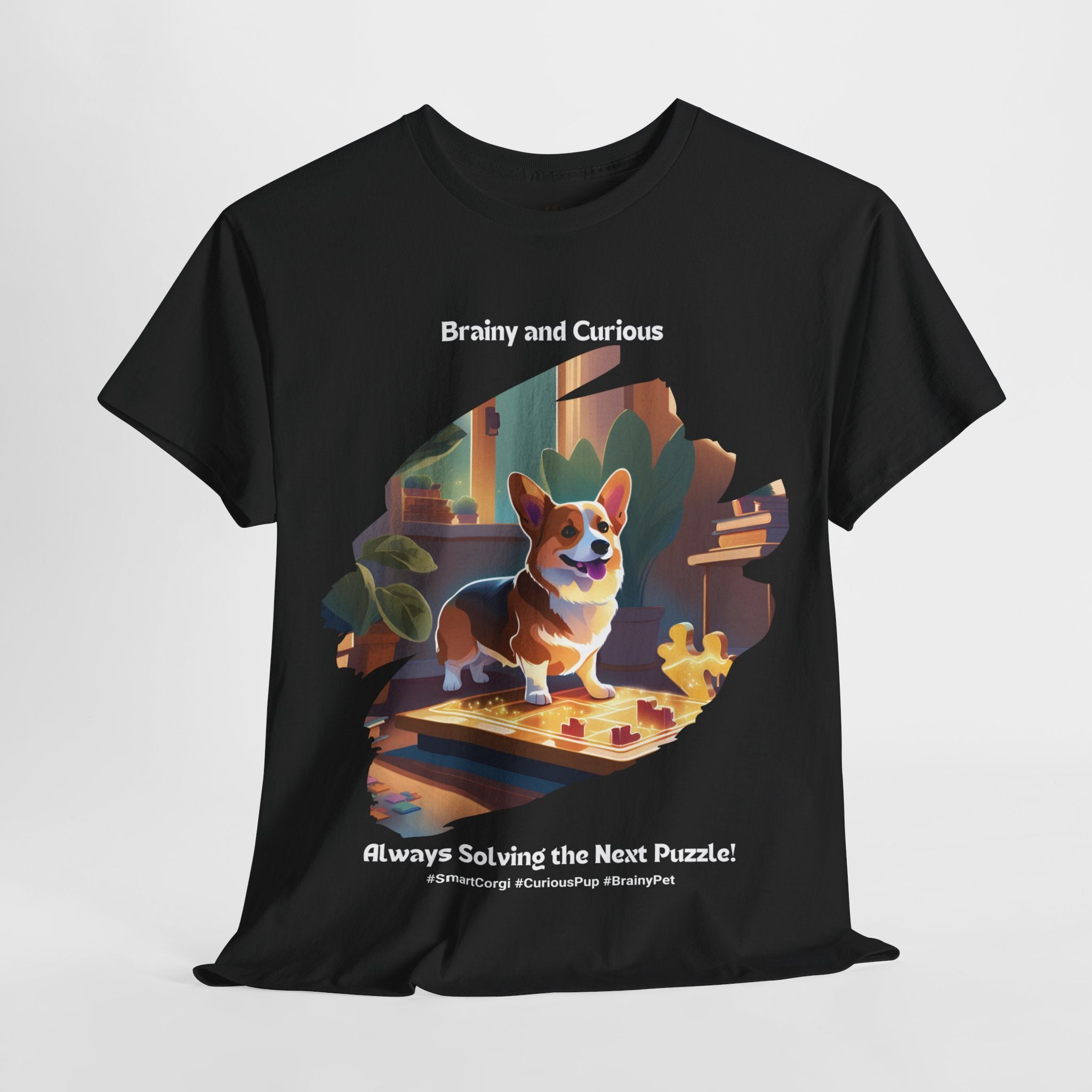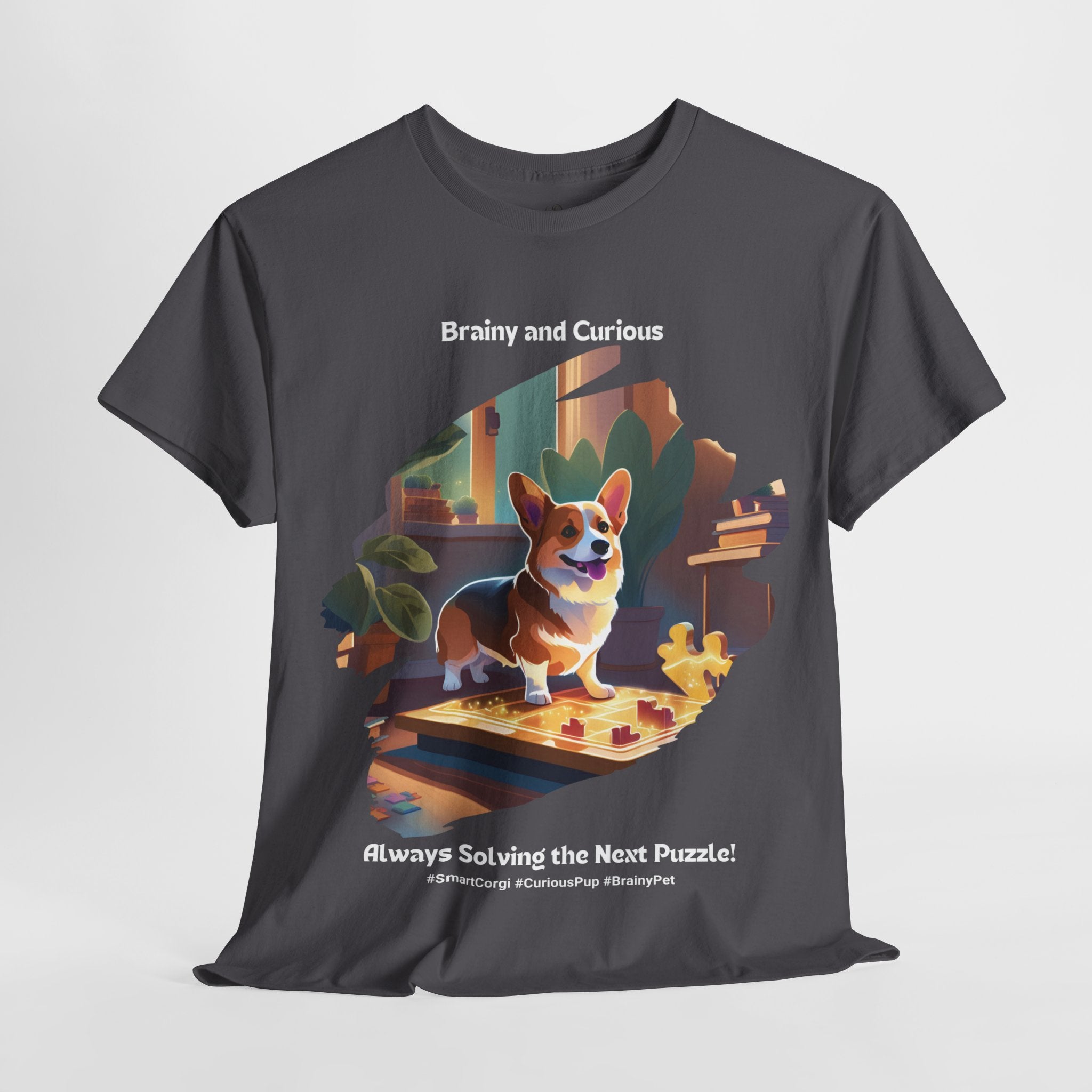 Unisex “Brainy & Curious” Corgi T-Shirt – Puzzle Master Pup, Dog Lover Gift