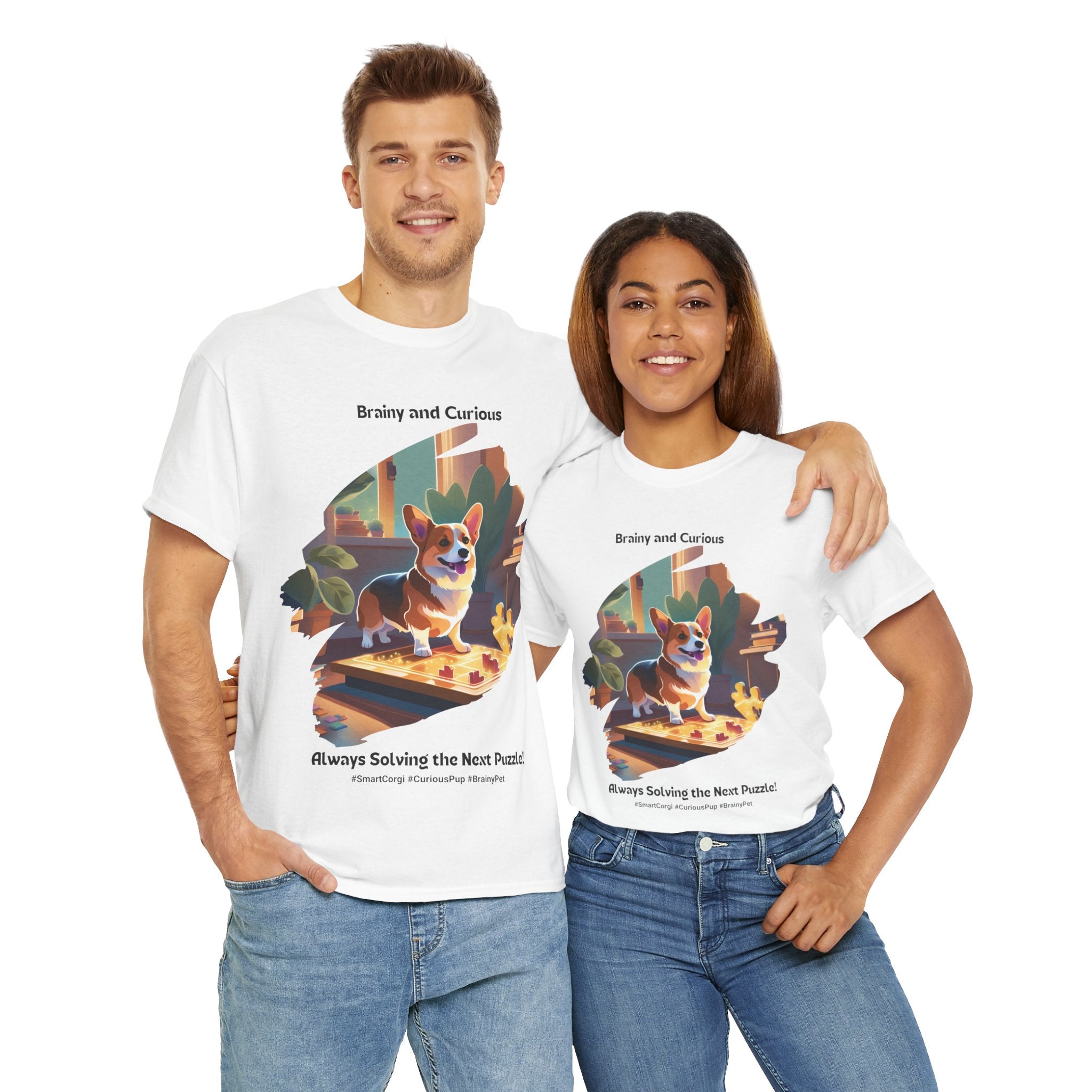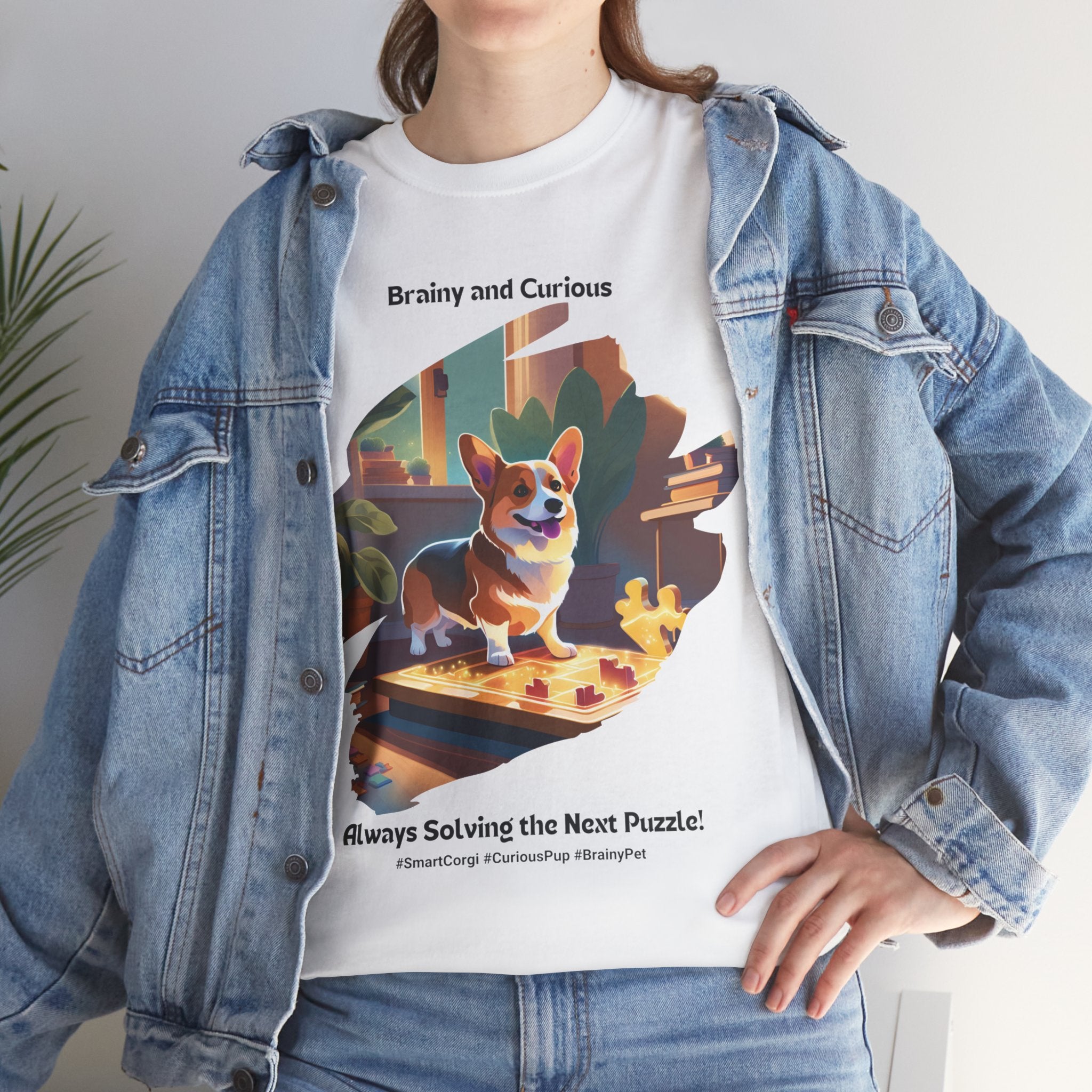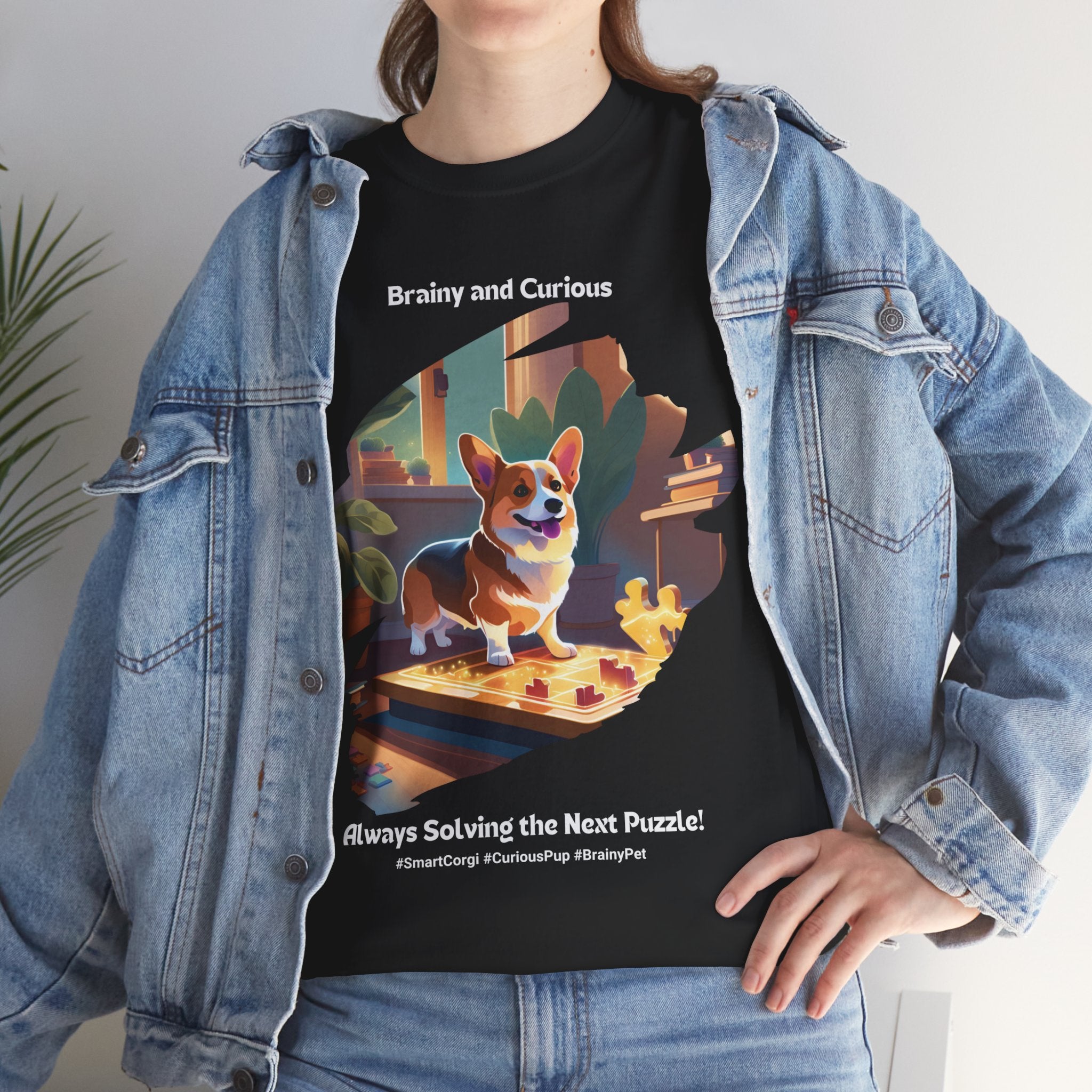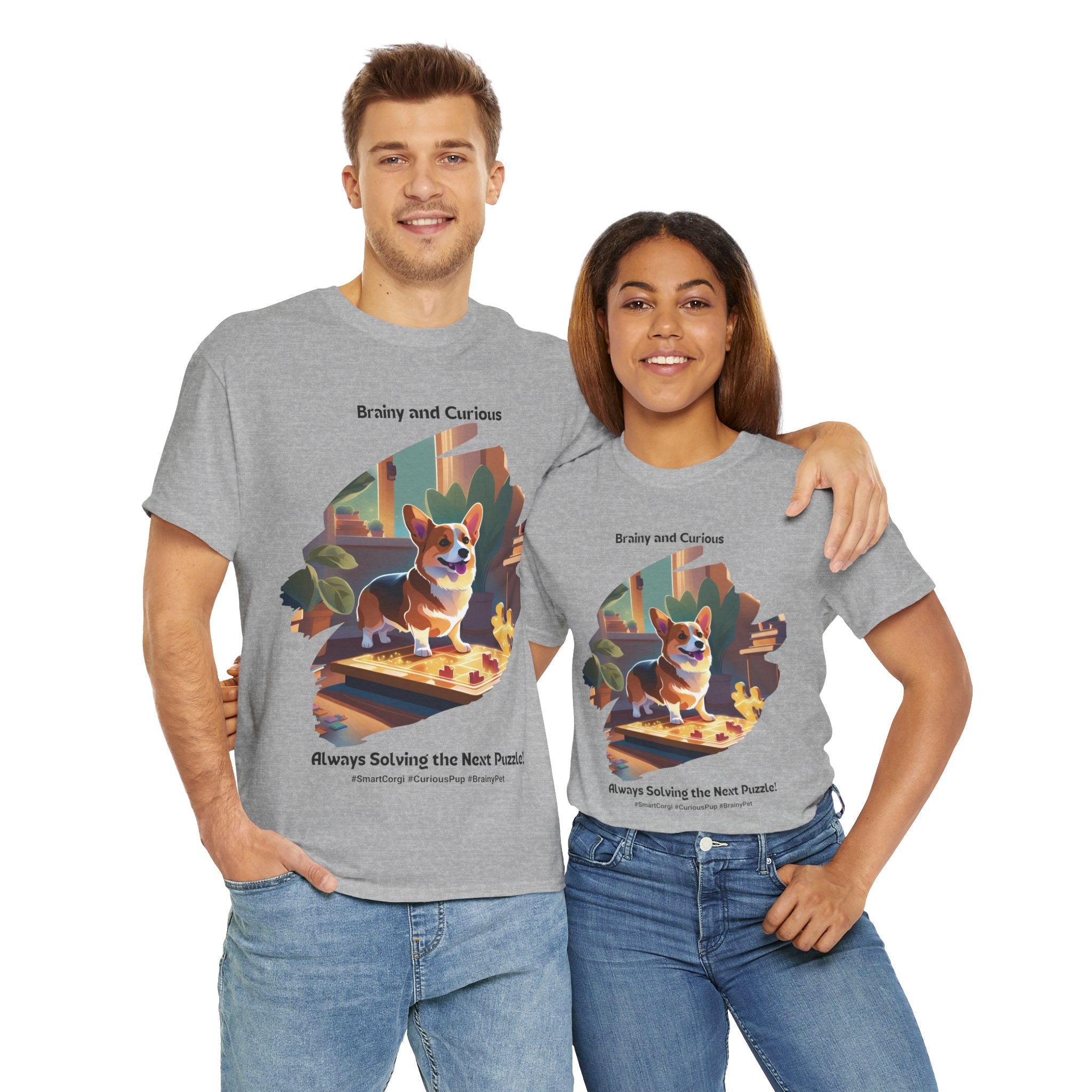 Unisex “Brainy & Curious” Corgi T-Shirt – Puzzle Master Pup, Dog Lover Gift